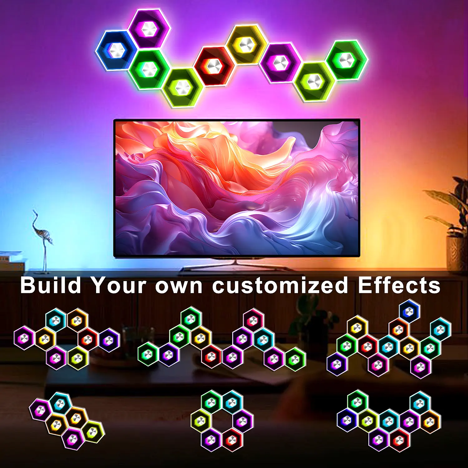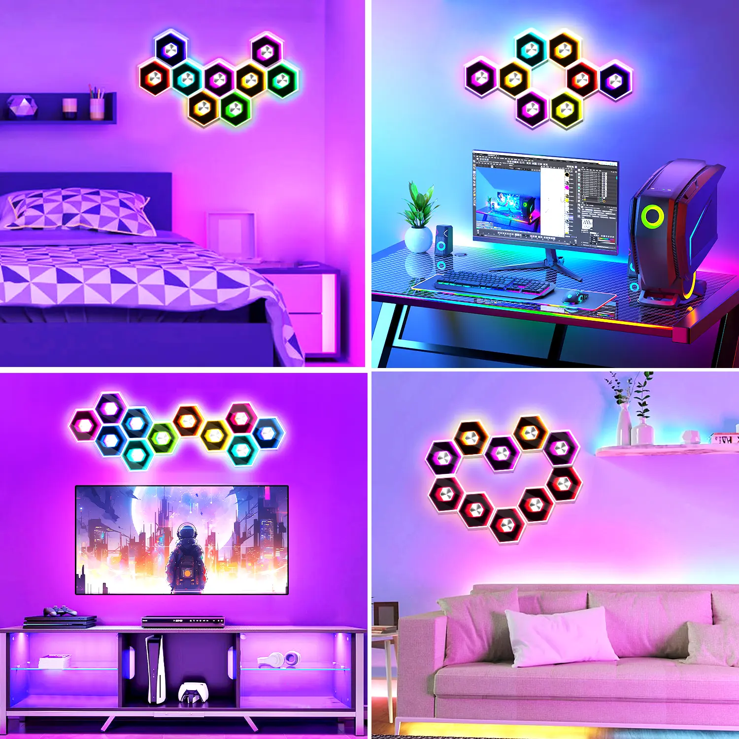 Experience the SEGRASS Hexagon LED Lights 🌟✨- Create a fantastic atmosphere in your living space.- Perfect for boys, girls, and adults.- Enhance the ambiance and create a unique lighting experience.