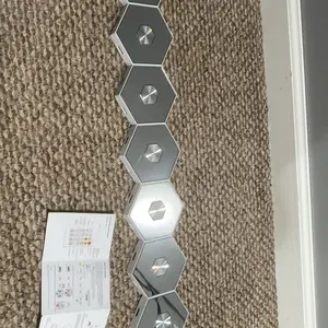 Unique Design & Free DIY 🏗️🎨- The hexagonal wall light contains 8 separate panels, allowing for splicing into different shapes.- A mirror design on the illuminated side reflects the room's scene.- The hexagonal template design inspires wireless imagination and DIY fun.- Creates a cool experience space.
