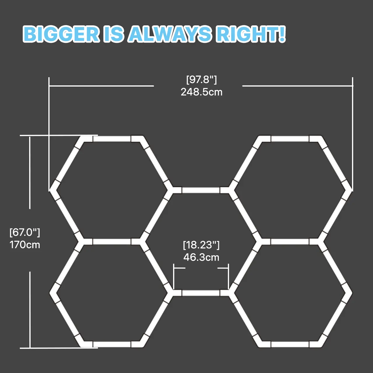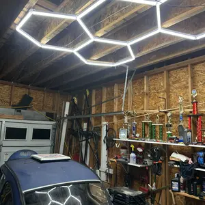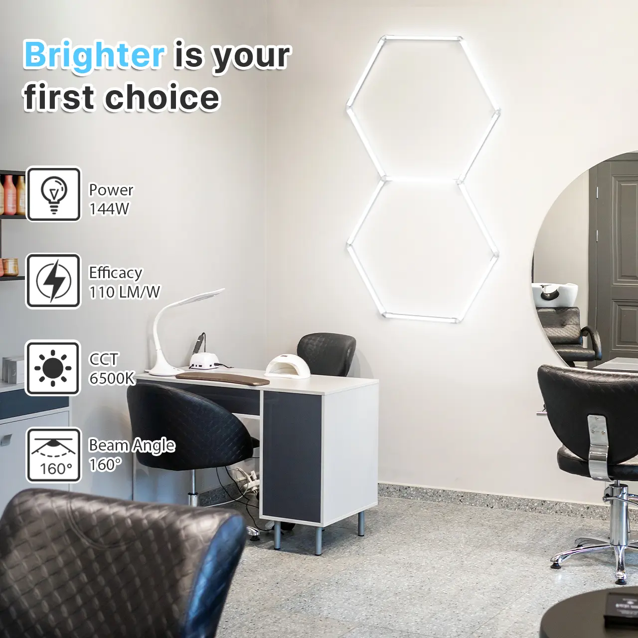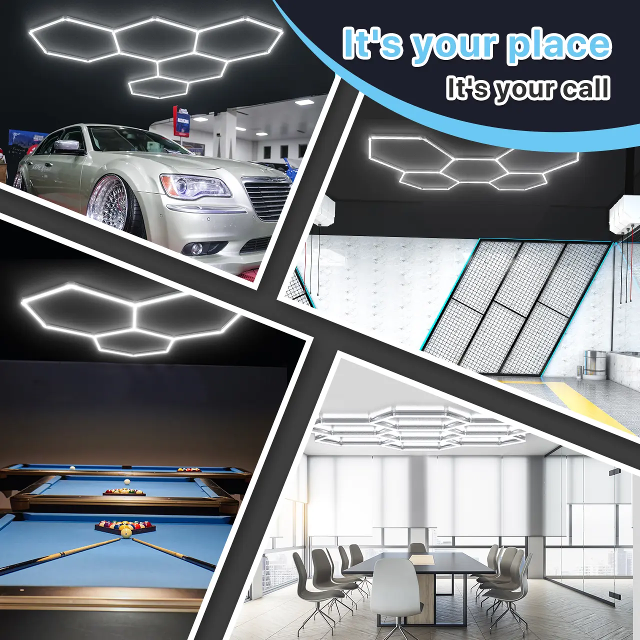 Ultra Bright: These HYPERLITE hexagonal garage lights provide a powerful light output in different grades, with 3960 lumens, 7269 lumens, 9900 lumens, 15840 lumens, 30360 lumens, 38280 lumens, and 54780 lumens, providing superb brightness for the garage or workspace. 6500K Cold White color temperature ensures clear and bright illumination ideal for tasks such as auto detailing, workshop activities, or gym workouts. activities or gym workouts, among other tasks.