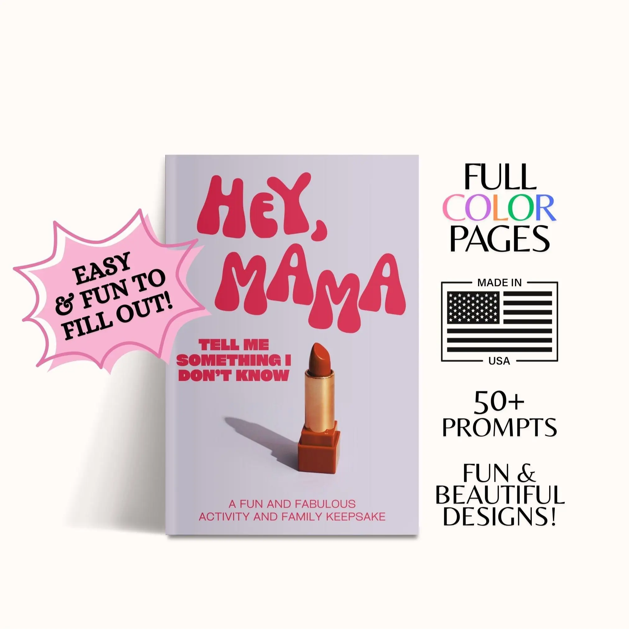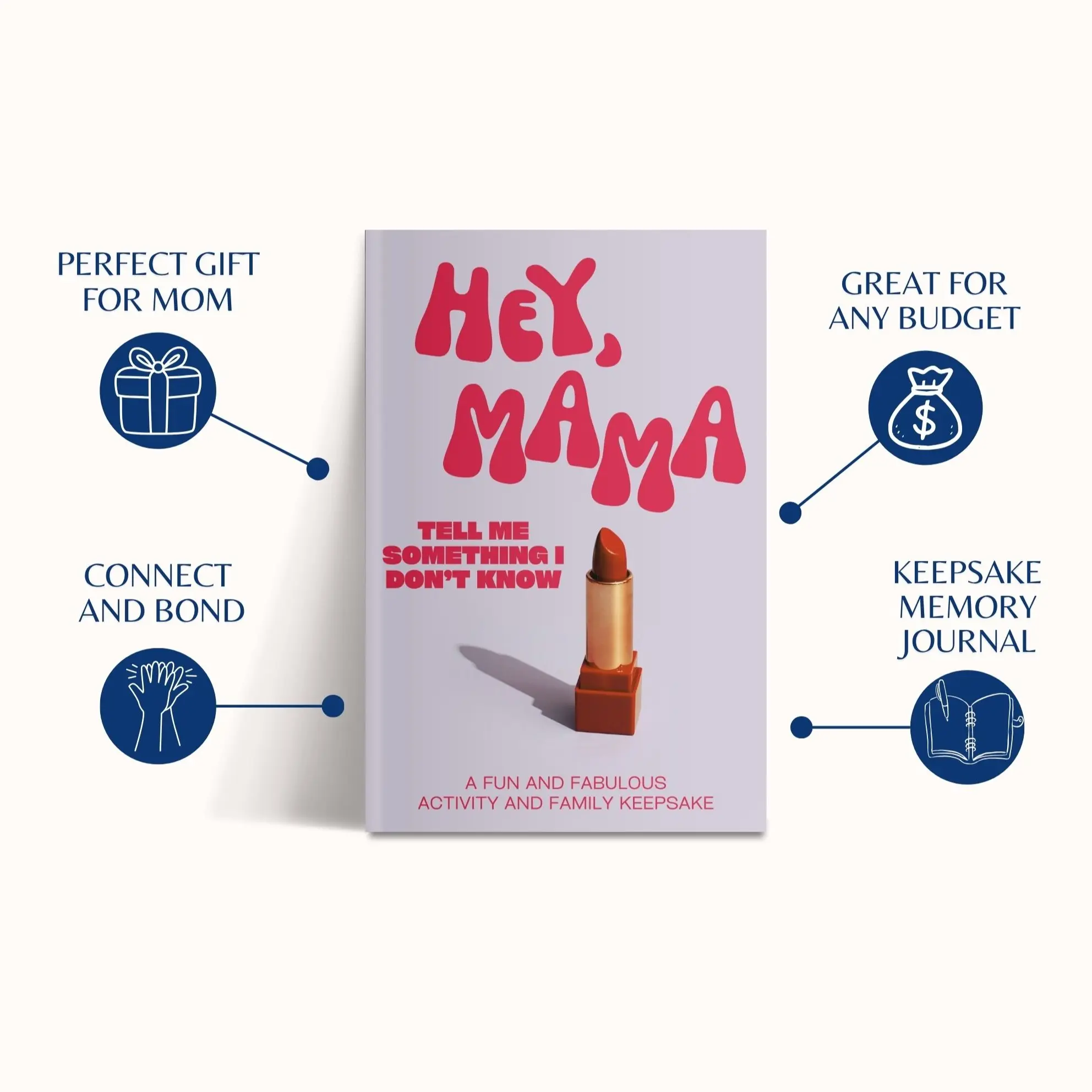 Preserve memories and share special moments. Questions like "Who was your first crush?" or "Favorite memory of us" help moms share parts of themselves. It's a sentimental gift for any occasion.