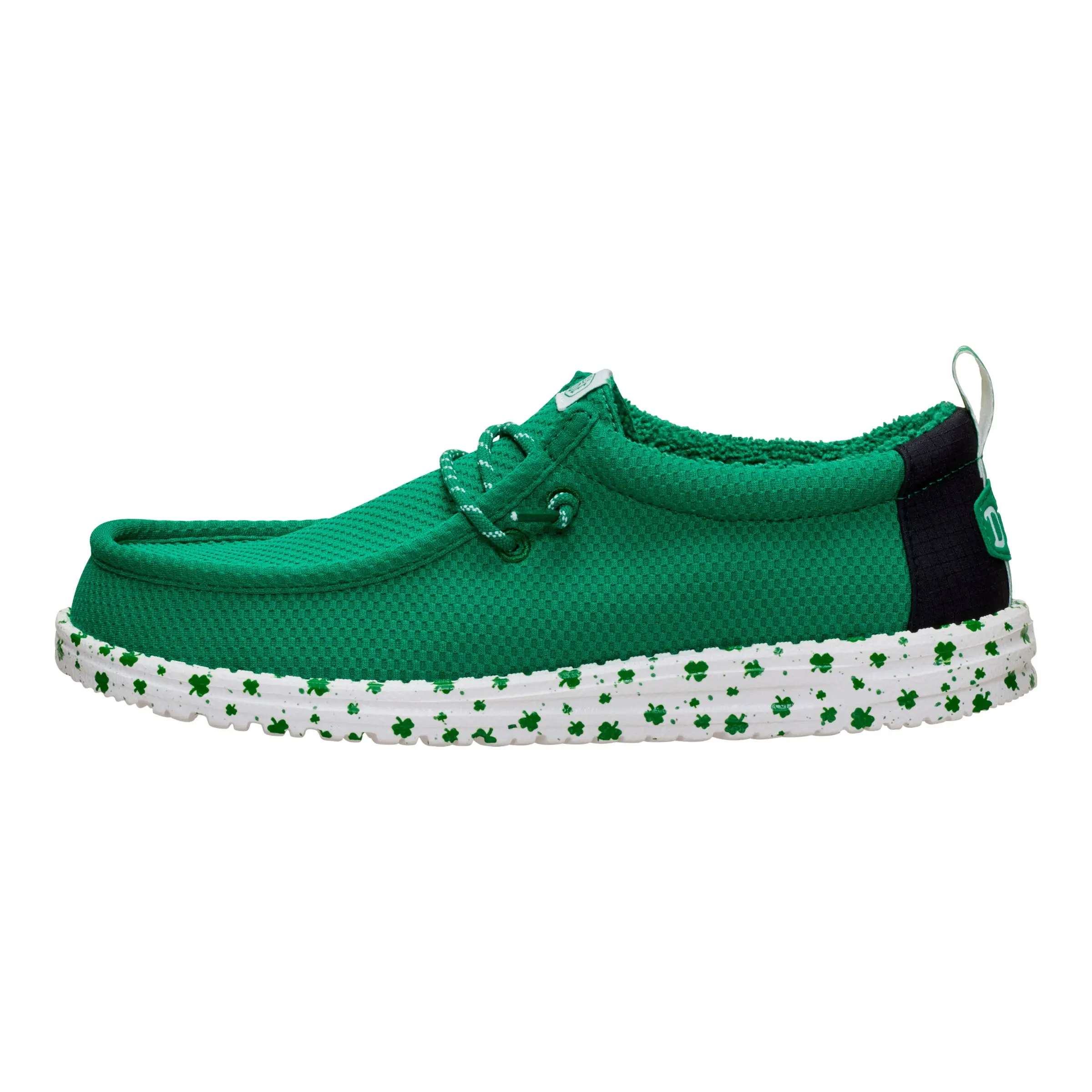 Wally Shamrock brings a lucky twist to your everyday go to. The breathable mesh upper keeps things light and comfortable, while elastic laces and the easy on system make getting out the door effortless. A printed midsole adds standout style, paired with a removable foam insole and lightweight flexible outsole for all day comfort wherever you roam. Travel ready and made to move, just note this style is not machine washable.