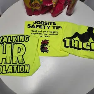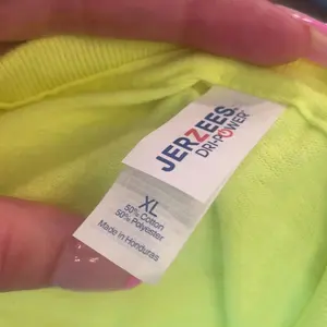 Loved the design, however these are printed on “jerzees” brand t-shirt, which is lower end Gildan. I thought I was ordering from an original company. These are high visibility shirts for work, but they are made of PolyCotton Blend, which isn’t ideal for working in the sun. And what is the stain?