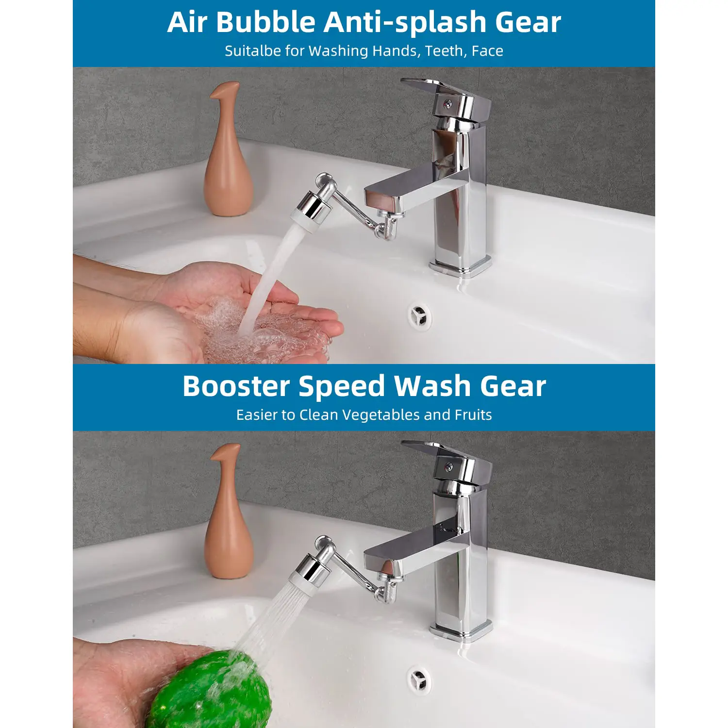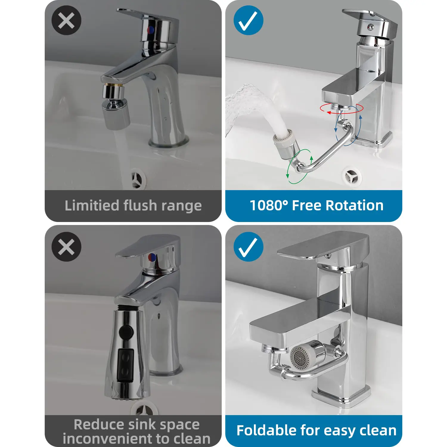 ·【Multi-Purpose & Save Water】Install this 1080 degree swivel extension faucet aerator in bathrooms for your convenience, whether for kitchen and sink cleaning, or for daily personal cleaning. Enhance your daily experience and save water at the same time.