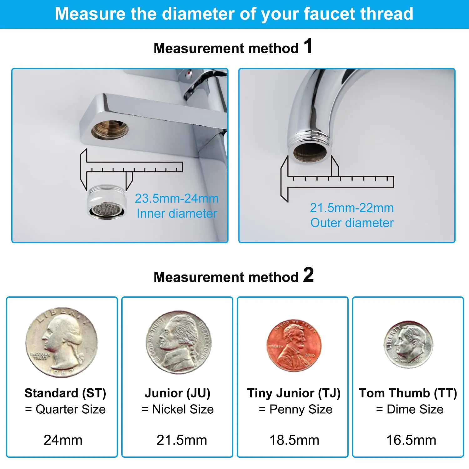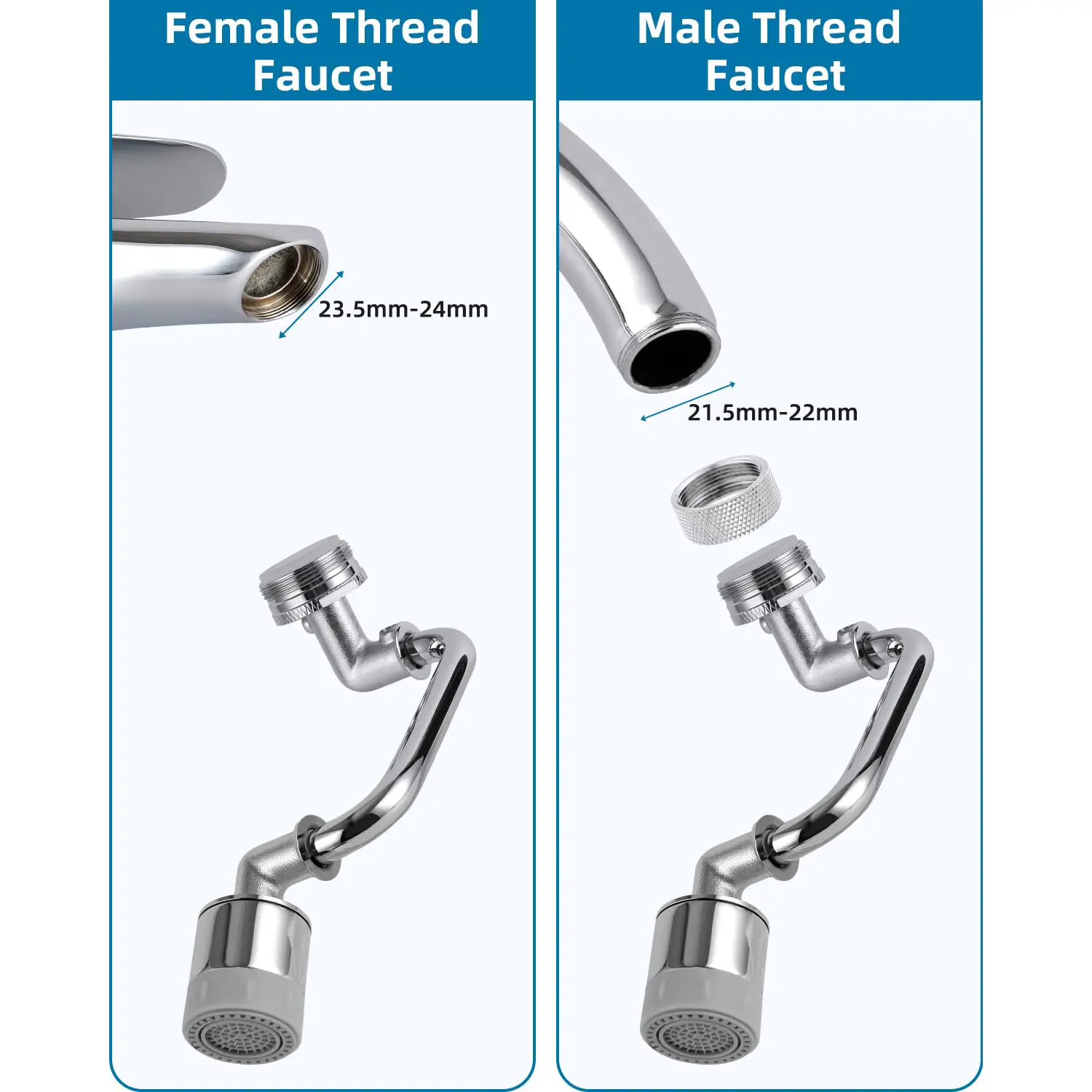 ·【Universal Threads & Installation Tips】This faucet aerator has 15/16-Inch x 27 male thread that fits for Female Thread faucet. If your faucet thread is male, you could choose the 15/16-Inch x 27 female thread adapter to match with it. We provide the male to female adapter for you included in the package. This product is covered by US Patent RE47552E.