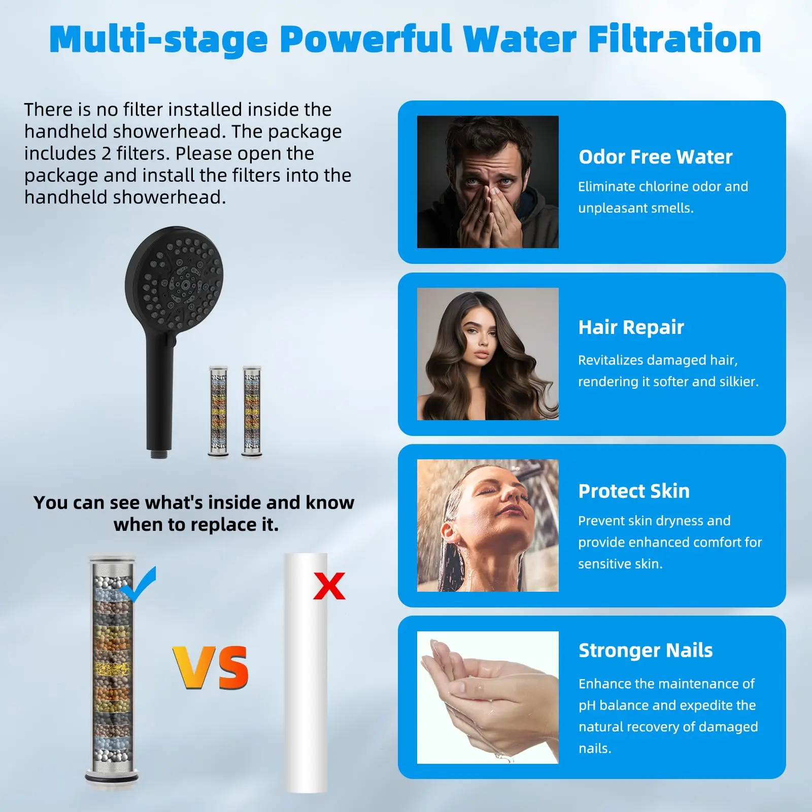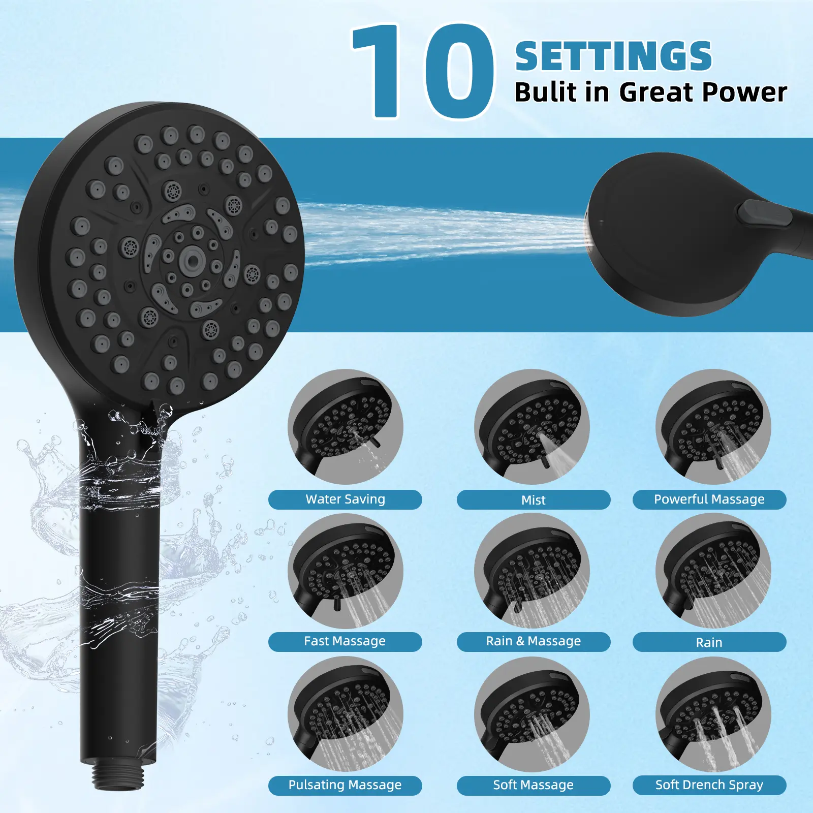 Β·Powerful 10 Spray Settings & Purify the Water: The Hibbent high-pressure handheld shower head has a multi-stage powerful filter and replaceable filter cartridges. Offering a diverse array of 10 settings, it provides a personalized shower experience, including a wide fan mode for efficiently cleaning large areas. This versatile shower head is a great tool for cleaning tubs, tiles, and pets. Indulge in the rejuvenating and revitalizing benefits of purified water with each shower