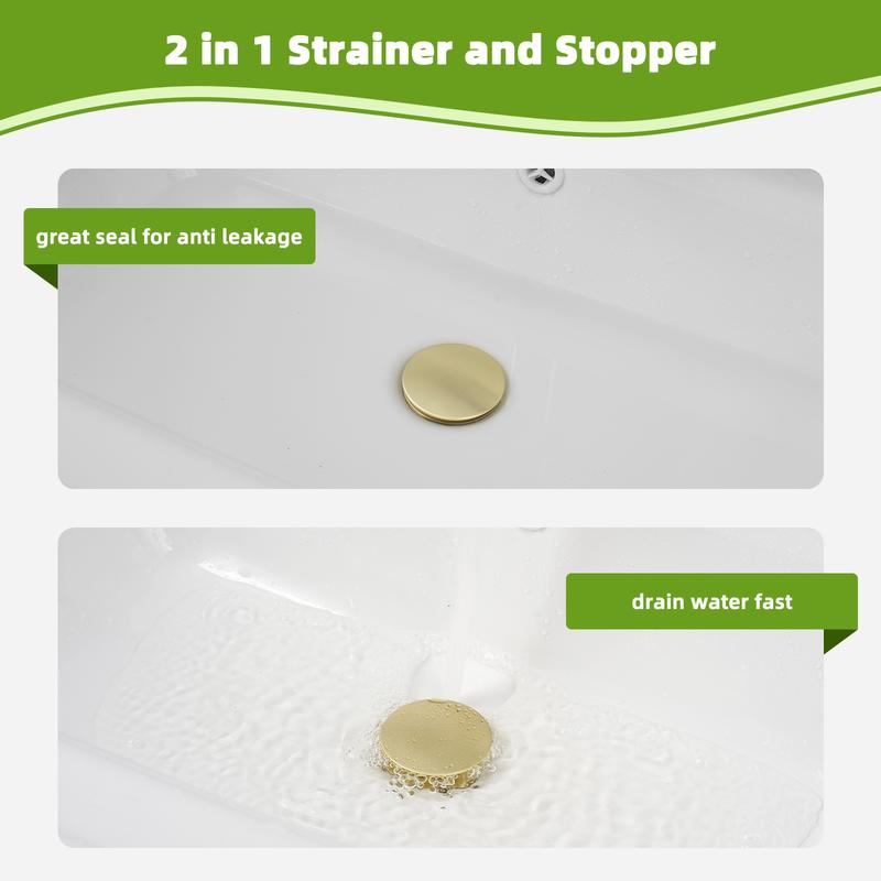 2-in-1 Use: This sink drainer combines both water seal and anti-clogging functions, effectively solves the bathroom sink's plumbing problem, and also combats sink inside odor; Big hole design provides powerful drain speed and can catch hair/waste around it