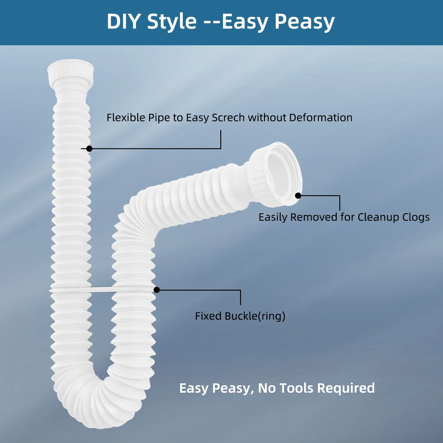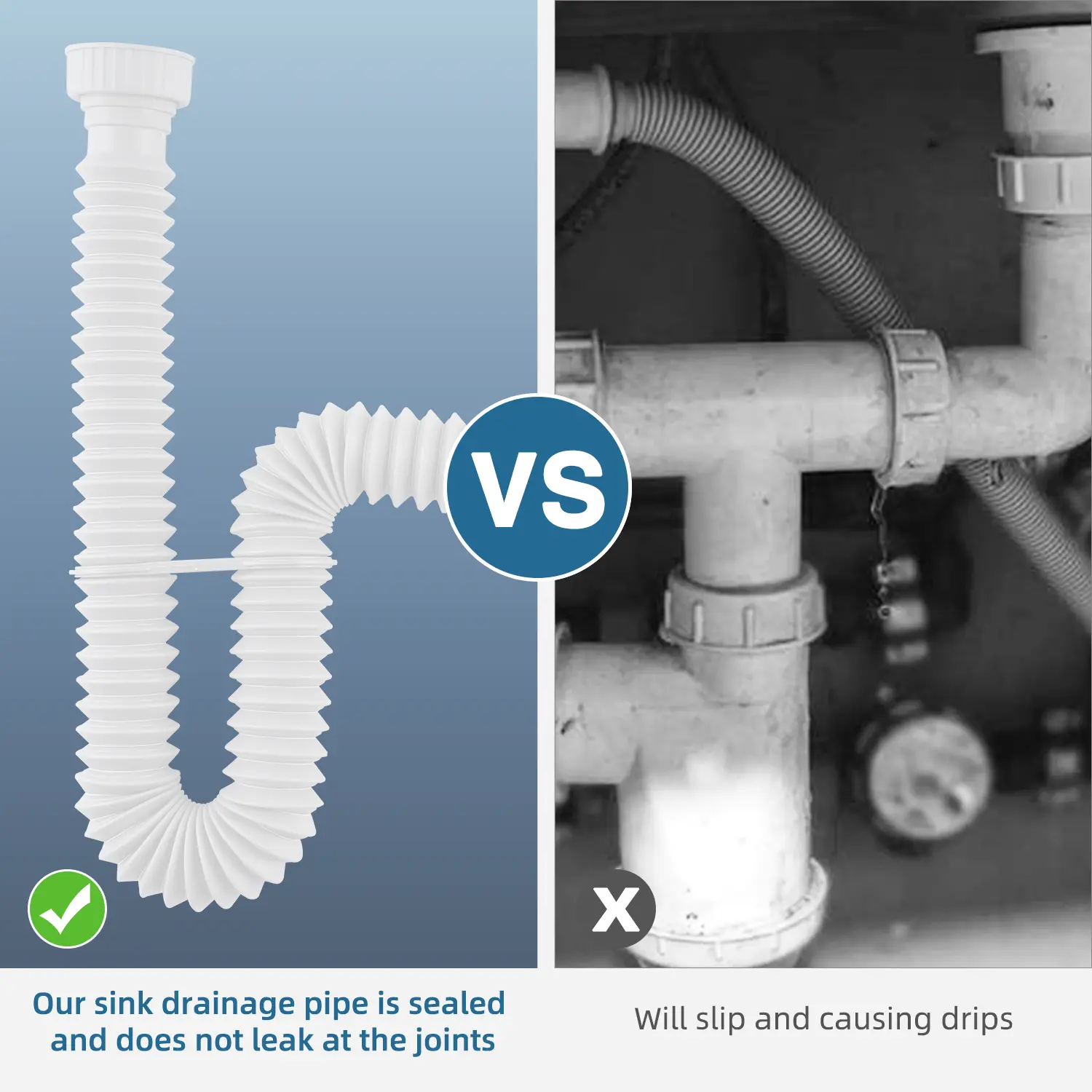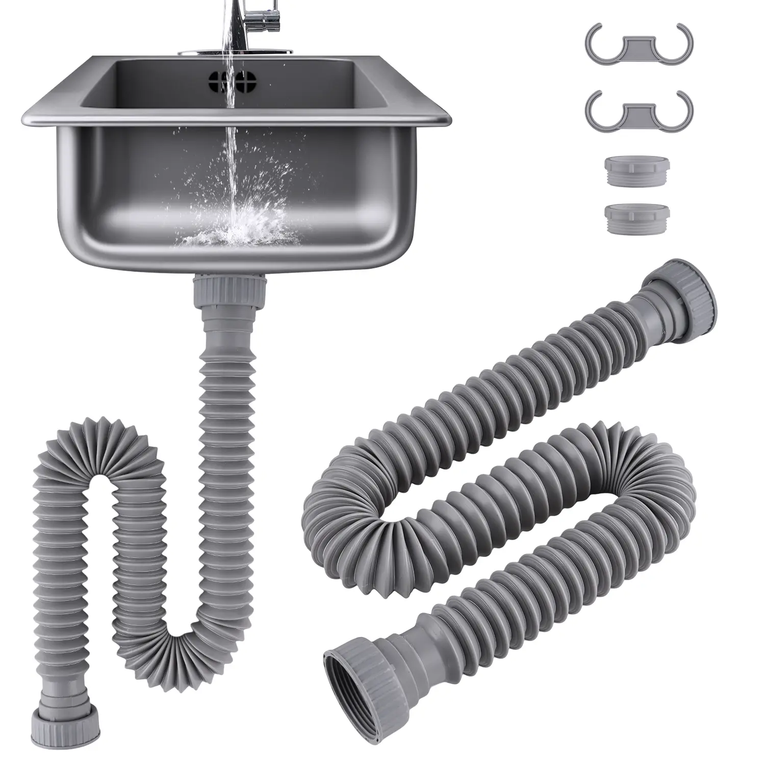 Easy to Install: The flexible sink drain pipe requires no tools or professional installation. Simply attach the rubber sealing rings to ensure a secure seal and prevent water leakage. Additionally, you can use our S-shaped buckle ring to securely fix the pipe in place and maintain its shape