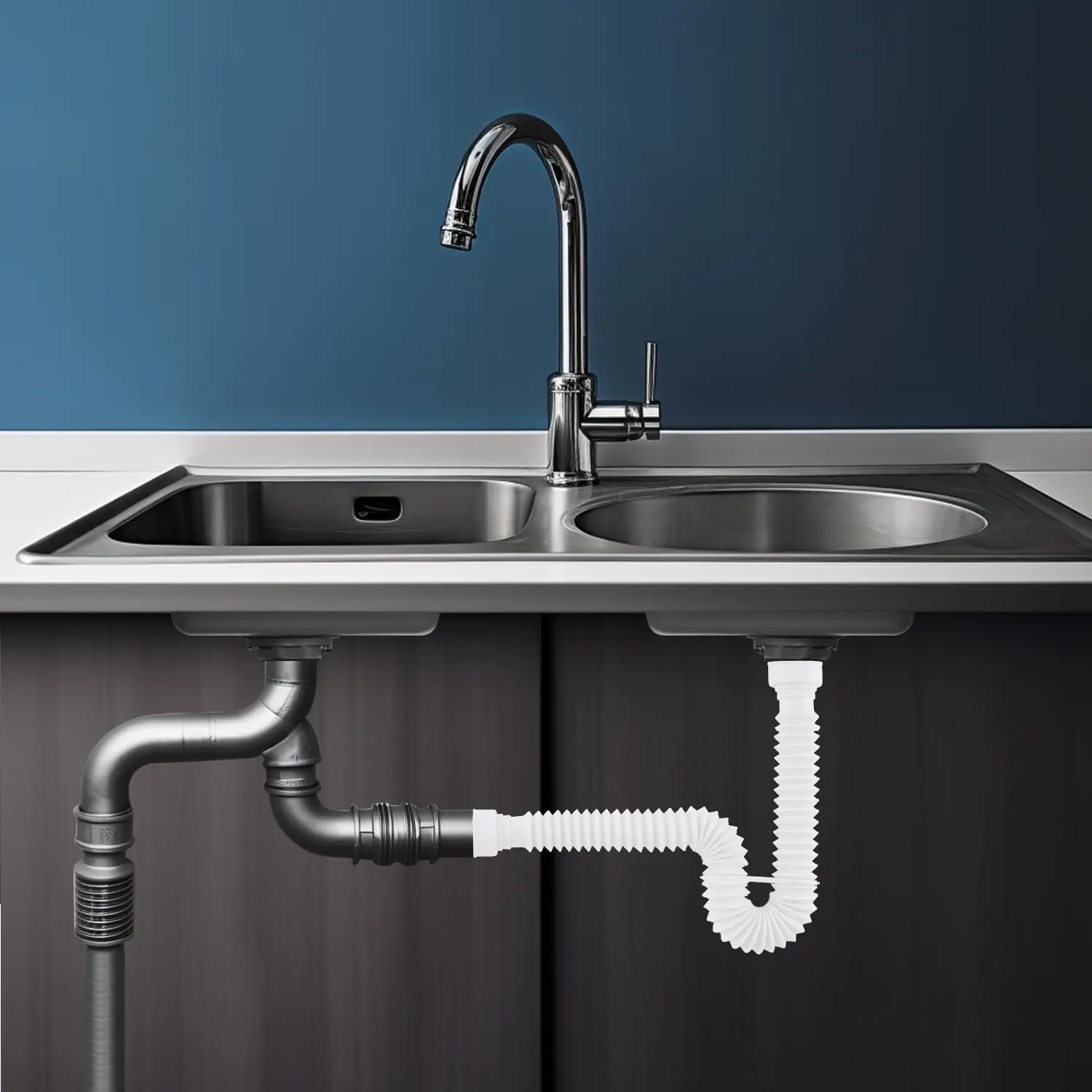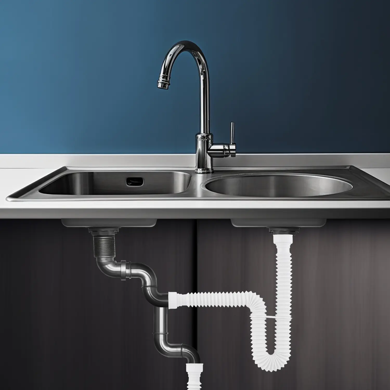 Easily Removed for Maintenance: Whether you're dealing with a clogged drain or simply need to clean it, the kitchen sink drain kit offers effortless removal. To do so, all you need to do is straighten the hose and run water through it into a bucket. The user-friendly design of this flexible P-trap ensures that you can easily keep your drain clean and functioning