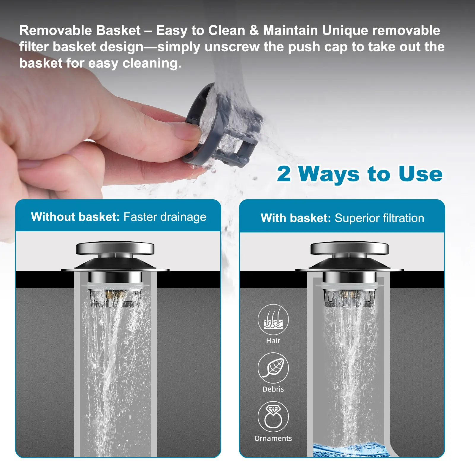 I was surprised how easy it was to “install” and amazed at how well it works! We filled our tub and left it overnight and the water was still in the tub the next morning. Works wonders and actually my tub drains faster now.
