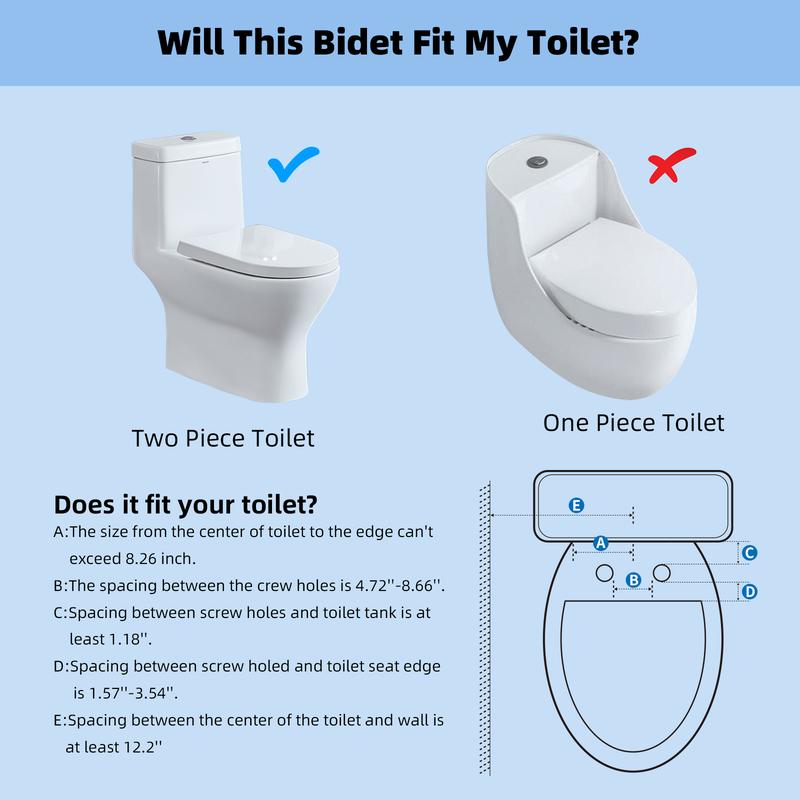 Easy Installation with All Required Components: Hibbent bidet attachment for toilet contains bidet body x 1, 29.5 inch stainless steel braided hose x 1, 9/16''-9/16''-9/16'' (3/8''-3/8''-3/8'') T-adapter x 1, rubber washers, and instruction x 1. It only takes several minutes to install. The bidet requires no special tools, and you can easily mounts it under the toilet seat lid in minutes. No plumbers are needed. Our Bidet Attachment is not compatible with one-piece toilets and RV toilets. Please check before placing your order.