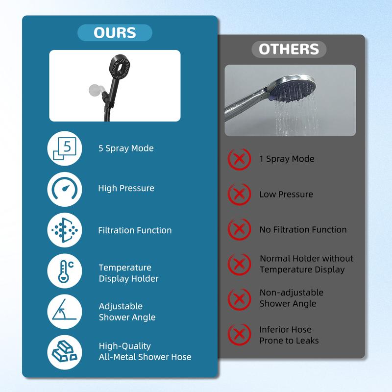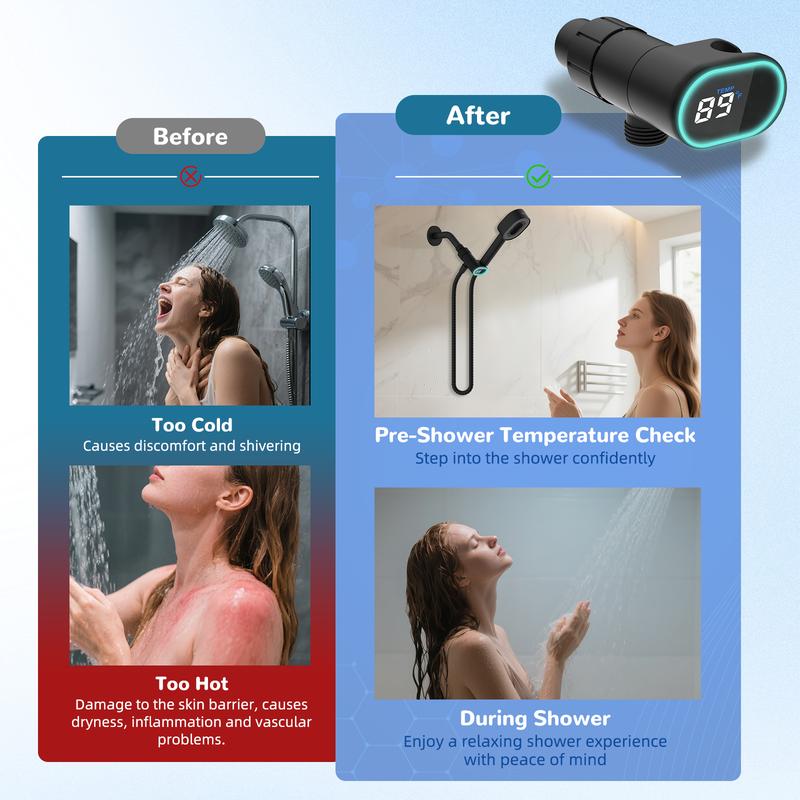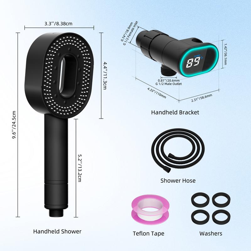 [Enjoy Safe and Convenient Shower] Our innovative handheld shower set brings you and your family the most convenient shower experience. It allows you to step into the shower with confidence. This avoids the discomfort of skin exposure to extremely cold or hot water, which can cause chills or scalding. While you are showering, enjoy a relaxing and worry-free experience. Check the real-time temperature and adjust it to the most suitable level for ultimate comfort. Moreover, the entire showerhead set is incredibly easy to install. No need to hire a plumber. Just follow the clear instructions provided and effortlessly install it in minutes