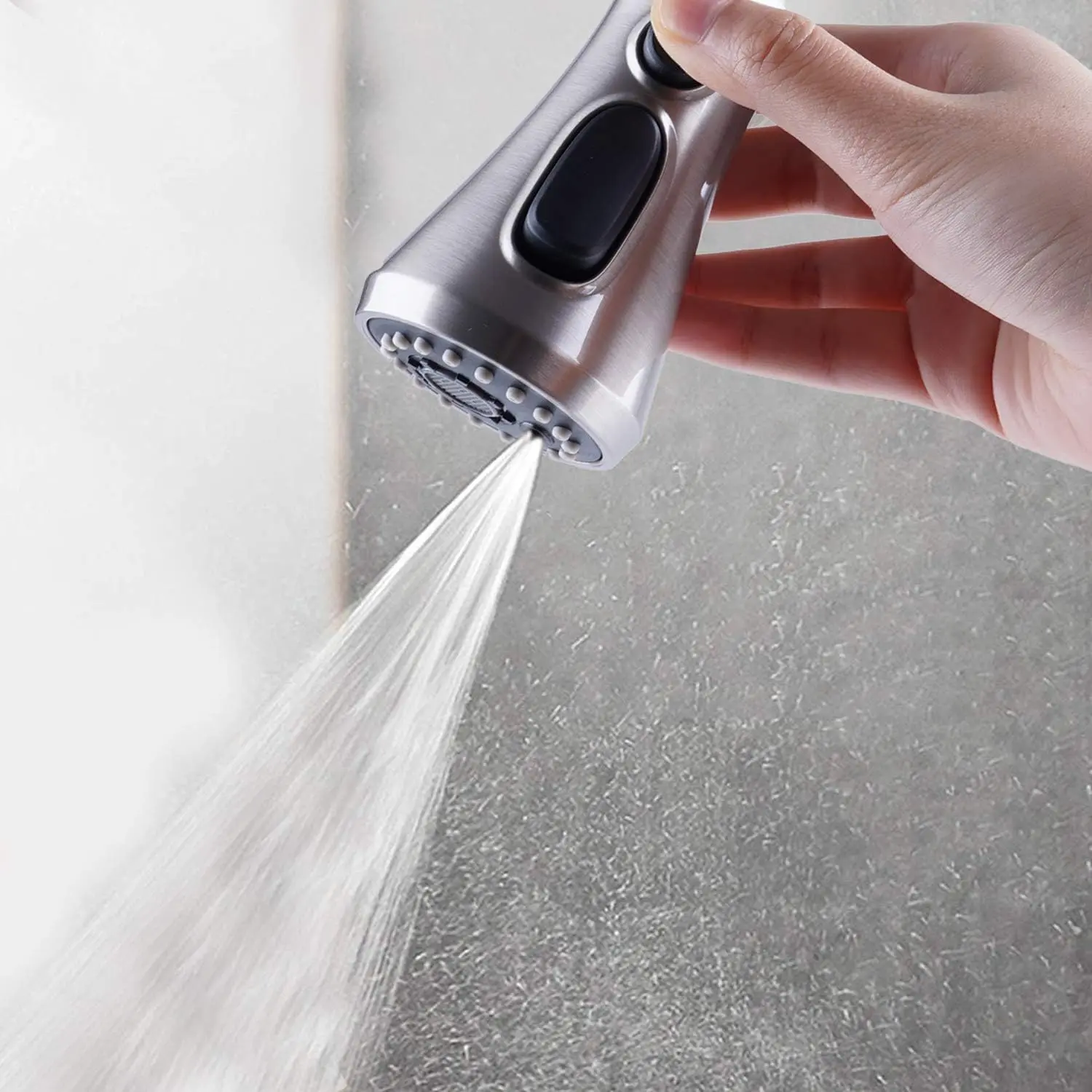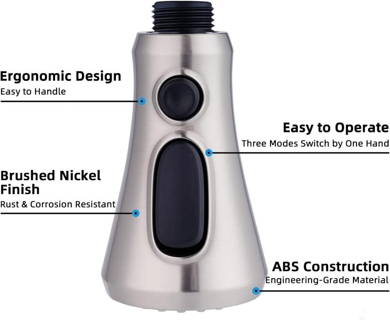 This sprayer head replacement is made of engineering grade plastic (PC/ABS) with brushed nickel finish that can withstand daily rust effectively, which ensures quality and longevity.