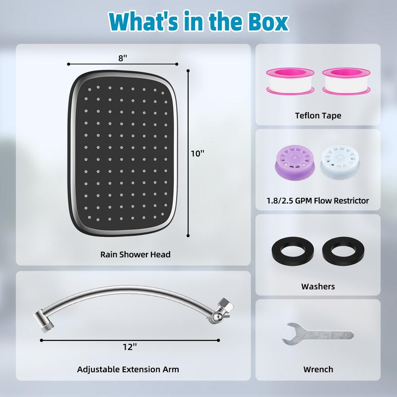 High Pressure Rain Shower Head Combo: The combination of pressure boosting and air-in technology creates a lavish rain spray, enveloping you in full-bodied drops that deliver a dynamic, high-pressure massage—even at low water pressure. With the removable 1.8/2.5 GPM restrictors, it seamlessly adjusts to diverse household water pressures, ensuring consistent, powerful flow every time, without any worries about insufficient pressure