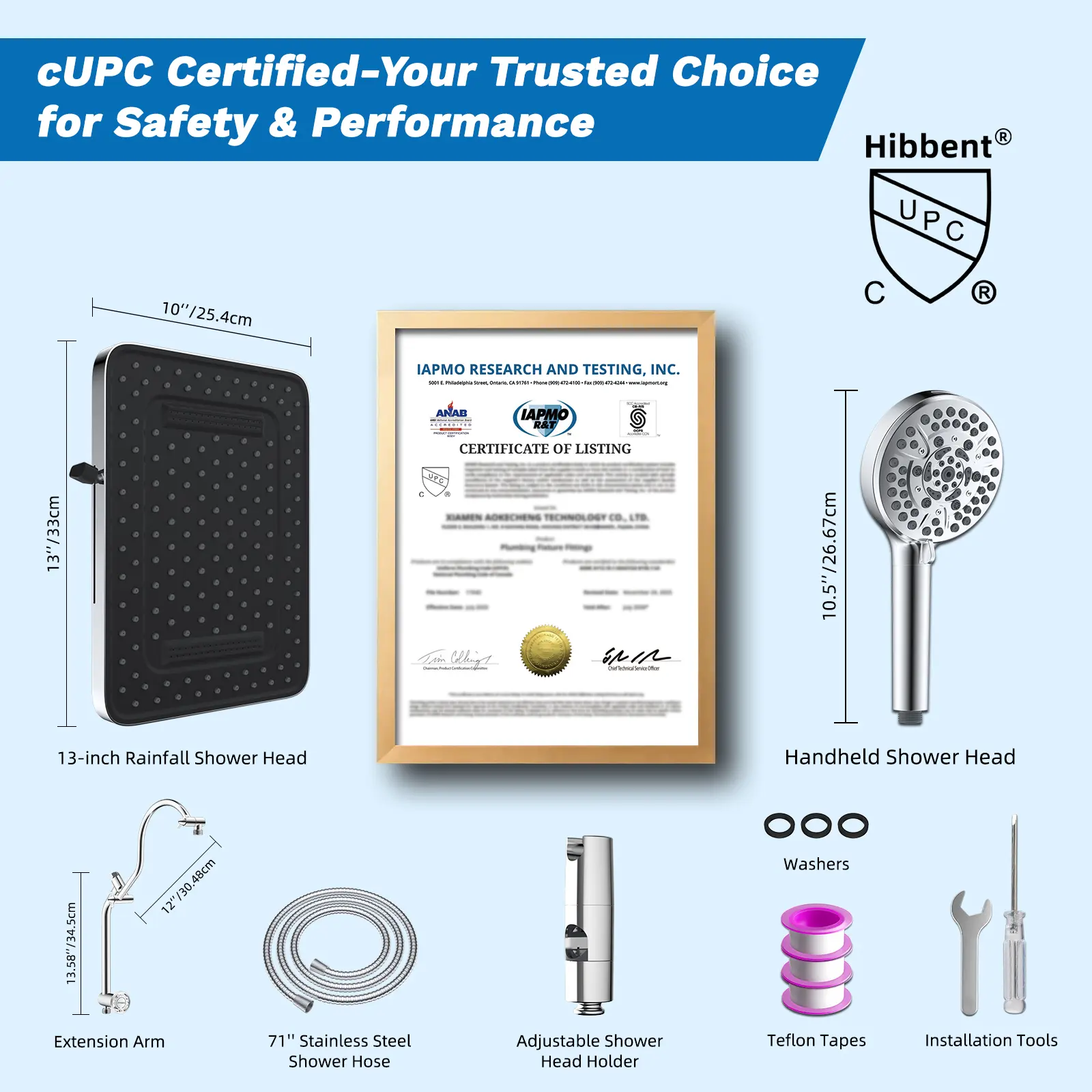 [cUPC Certified & Easy to Install] This showerhead with handheld combo is cUPC certified, meeting U.S./Canada plumbing safety standards—making it your trusted choice for reliable safety and performance. Installation is a breeze—all necessary hardware and clear instructions are included, so you can set up your new shower system quickly without professional help! Plus, our customer support team has your back