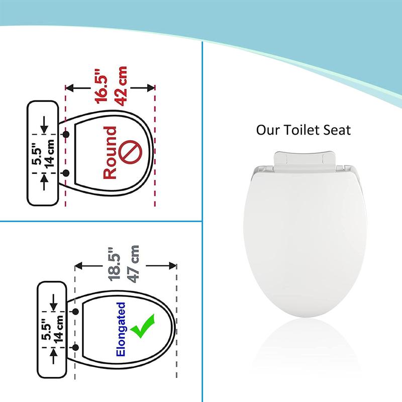To prevent the seat slipping, there are 4 non-slip bumpers behind it. This elongated toilet seat closes slowly and quietly to eliminating slamming and pinching fingers.