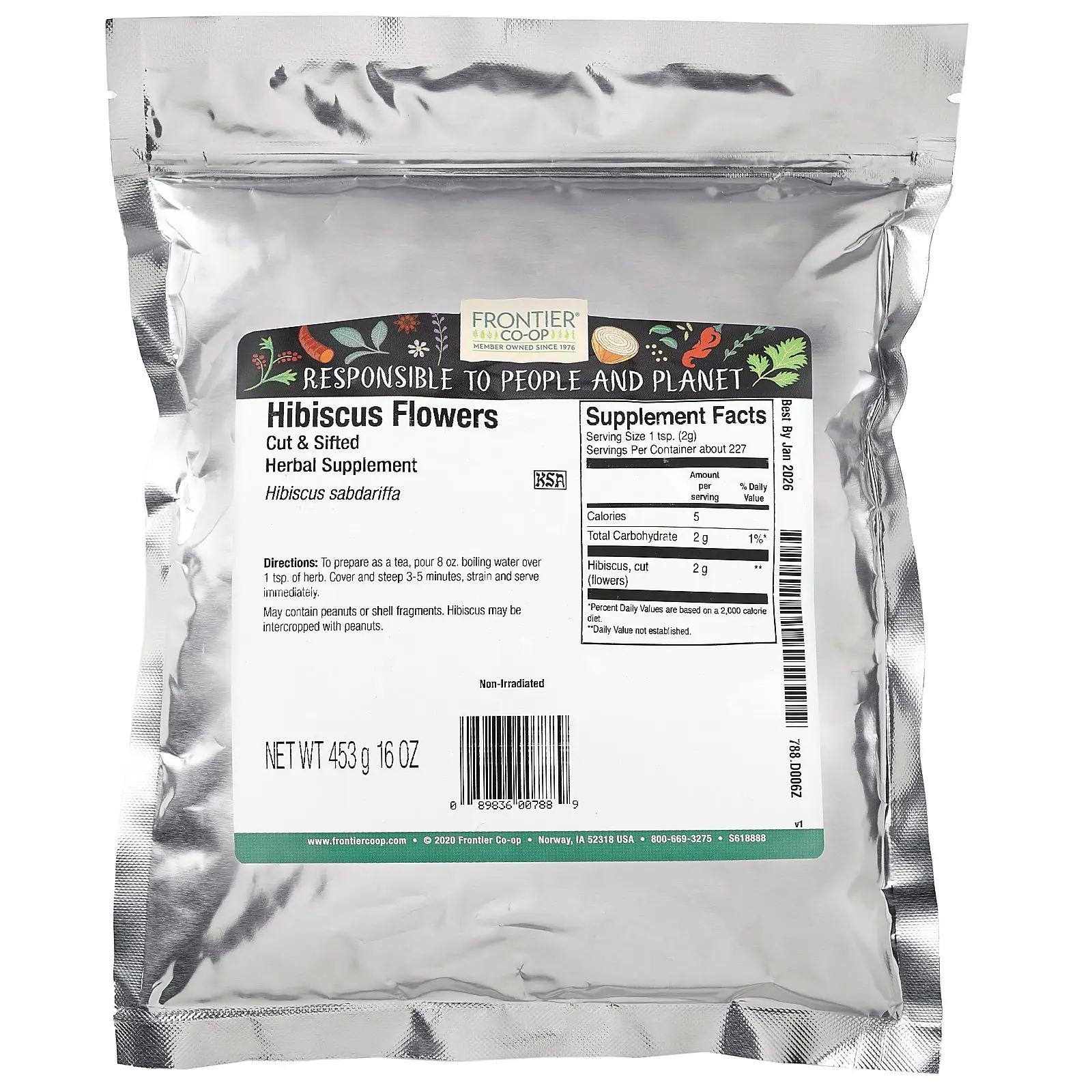 Frontier Co-op Cut & Sifted Hibiscus Flowers, 16 oz (453 g)