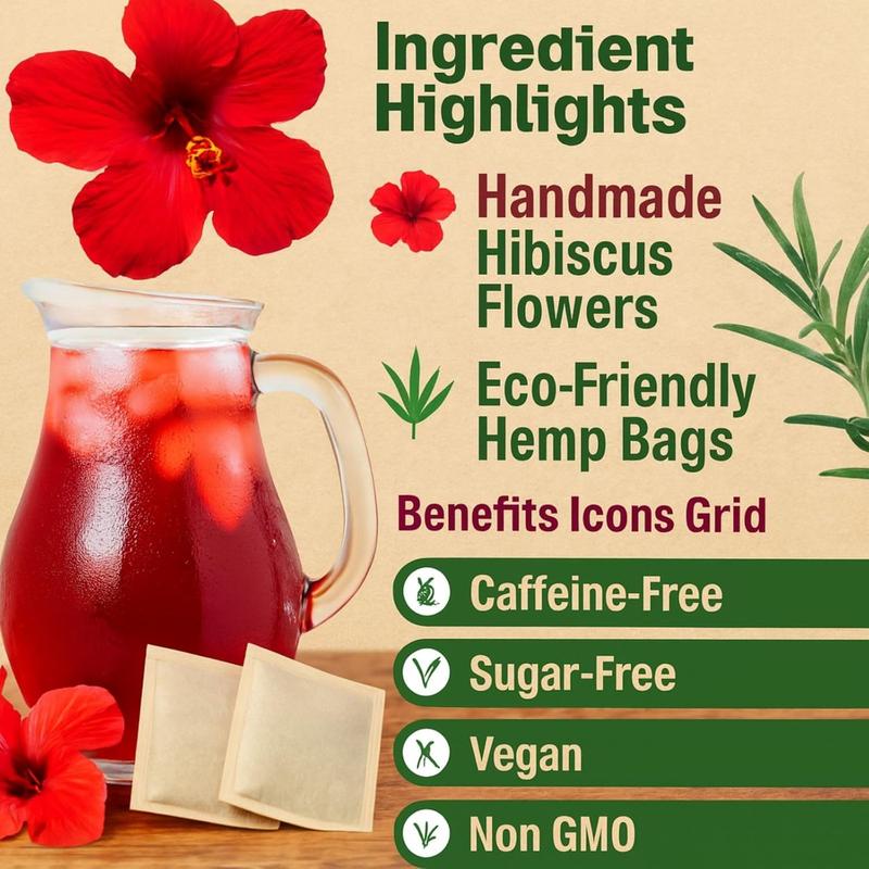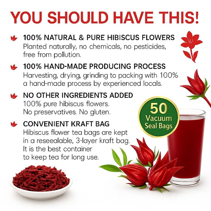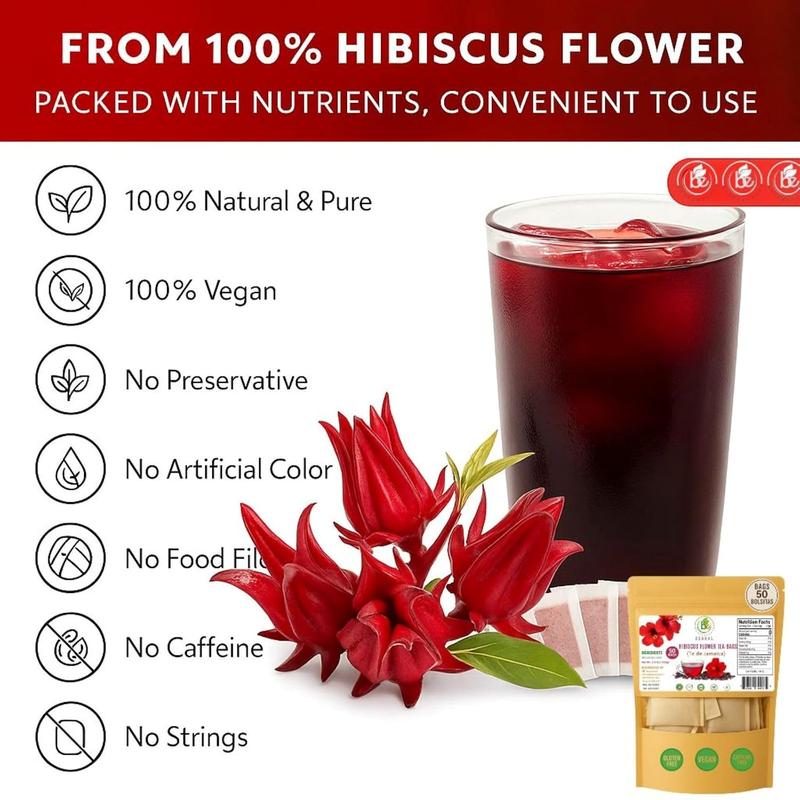🌸 Hibiscus(Jamaica) Premium Flowers Tea Bags – 50 Count (2 g Each)