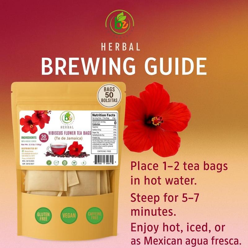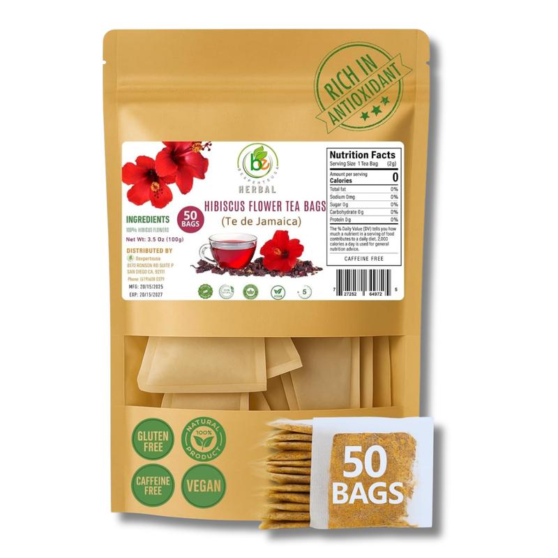 Discover the Hibiscus(Jamaica) Premium Flowers Tea Bags – 50 Count (2 g Each). These tea bags are 100% natural, ensuring a pure drinking experience.