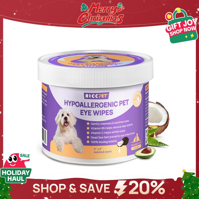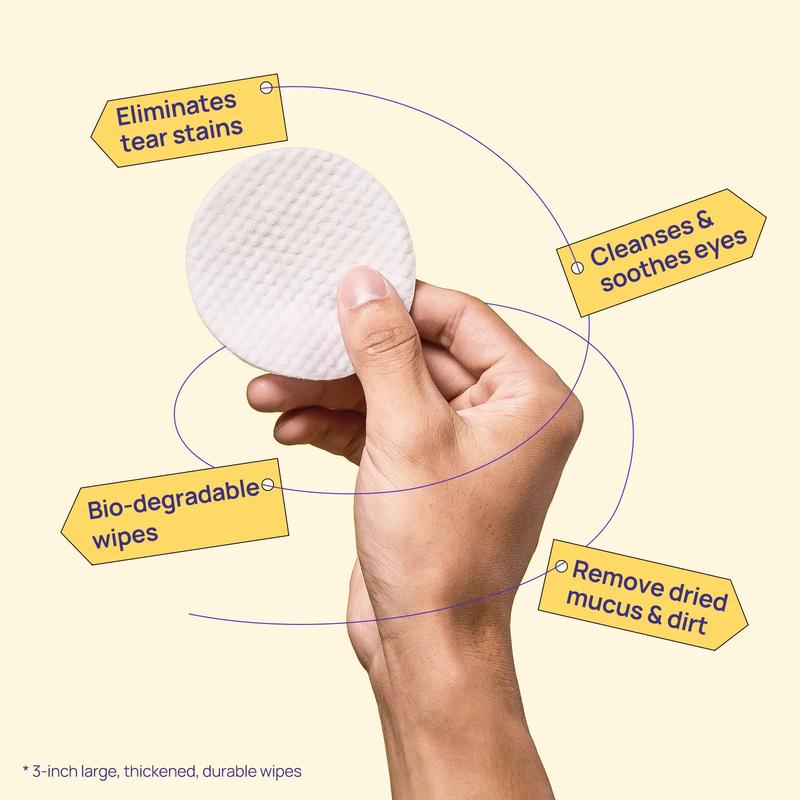 The unique fermented Coconut Oil formula, combined with Vitamin B5, Vitamin C, Dead Sea Salt, and hypoallergenic plant-based ingredients, makes this product the perfect choice to gently remove tear stains, dirt, and dried mucus around the eyes. This 2-bottle set contains 200 pcs in total (2 bottles, 100pcs/bottle) and is great for multi-pet families, storage, and gifting. Recommended by veterinarians.