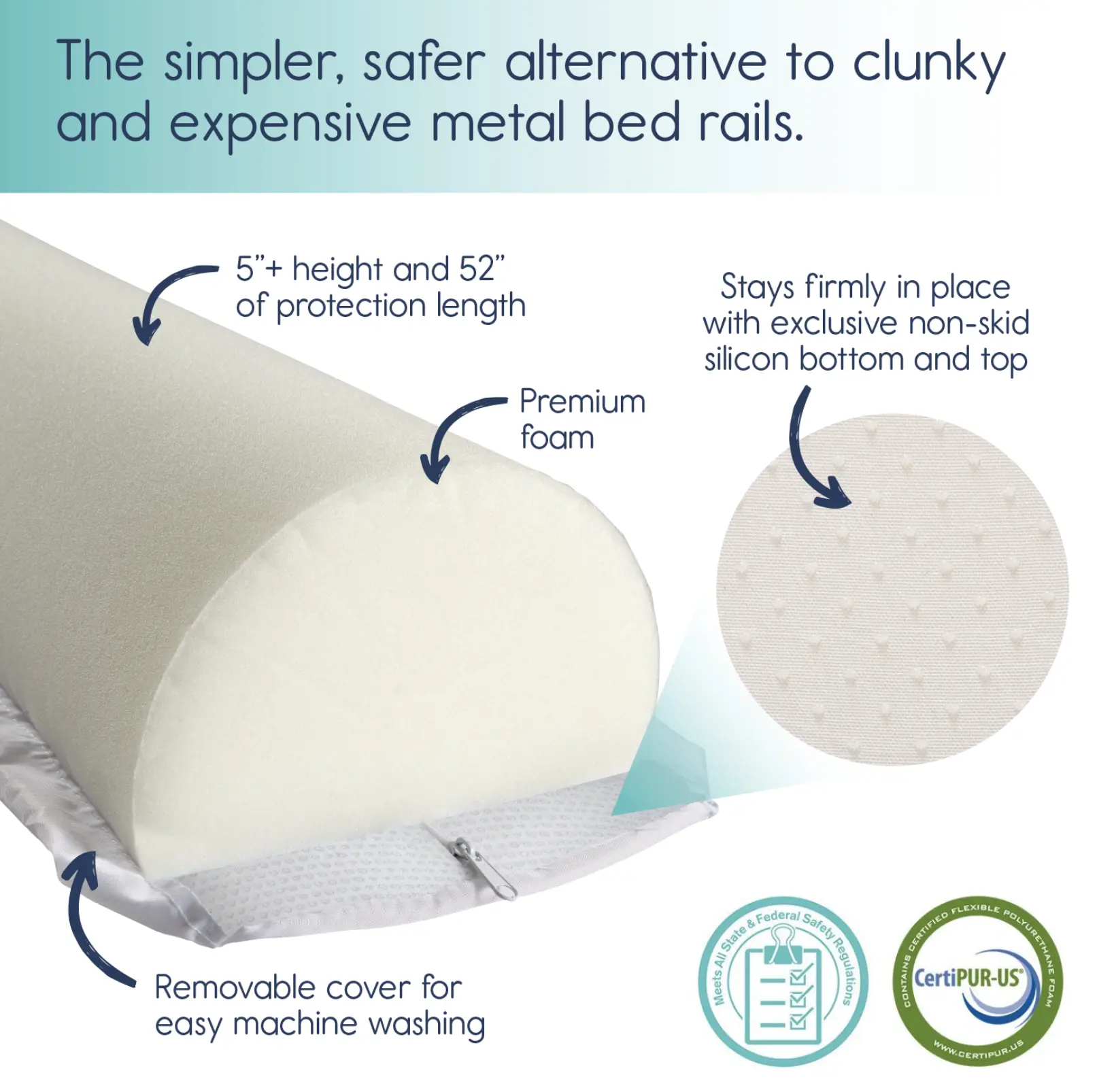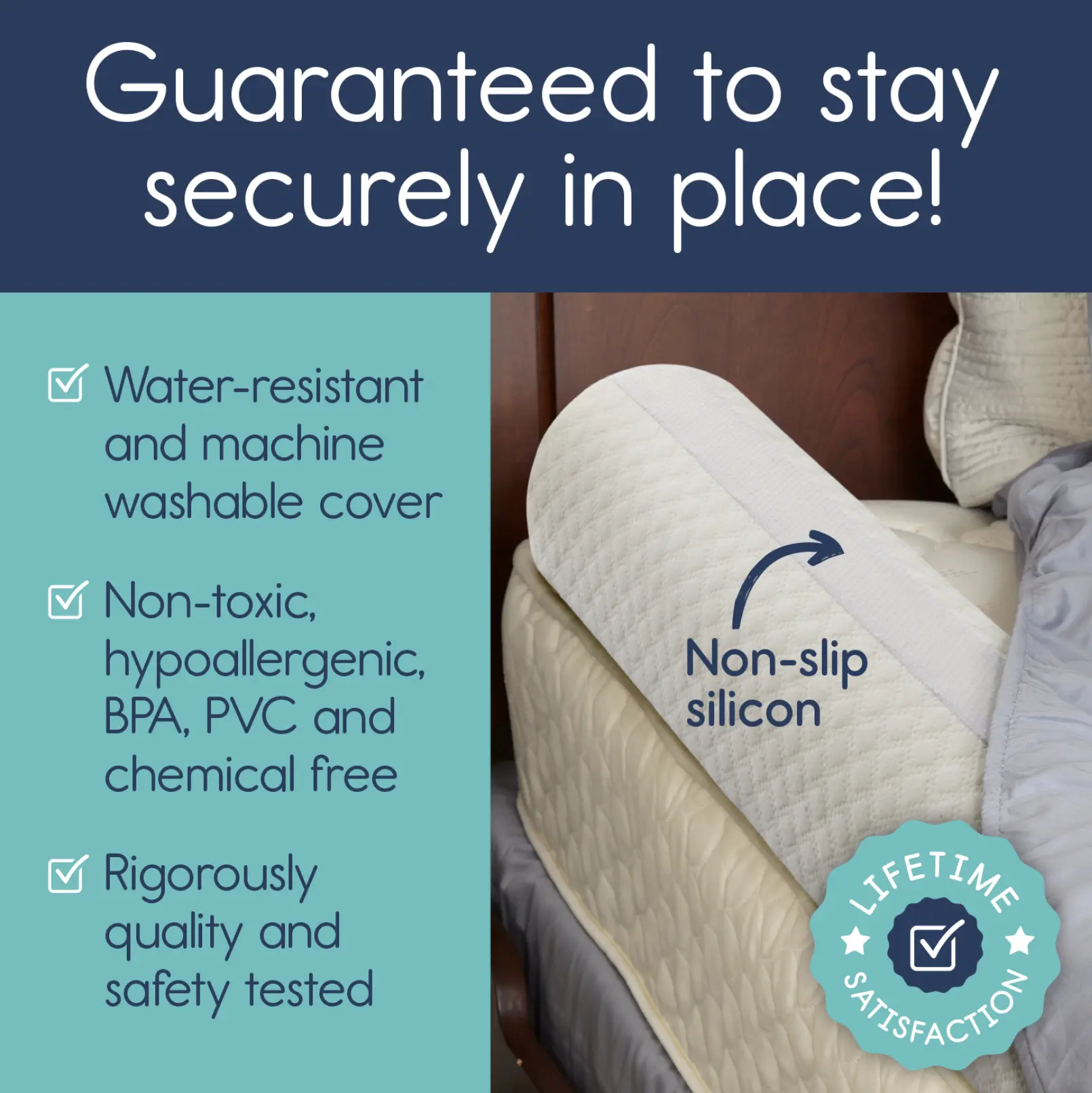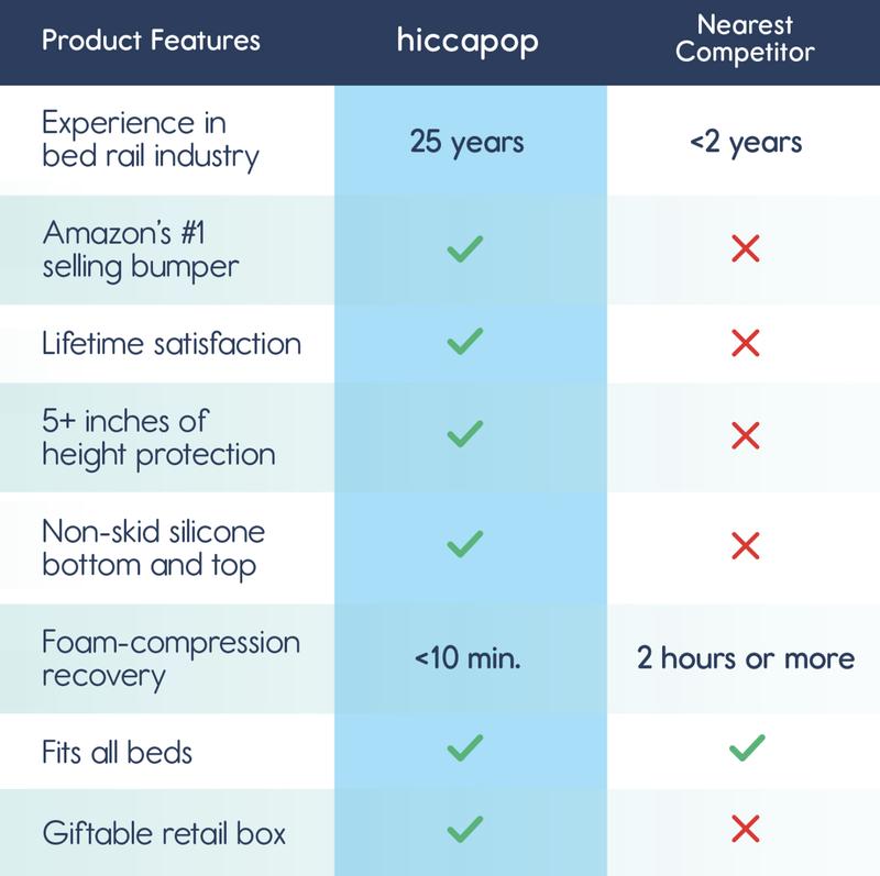 Hypoallergenic, non-toxic, and free from PHTHALATE, LEAD, & BPA. Unmatched quality with a 100% lifetime guarantee. This product is a game-changer in bed rail safety. Enjoy peace of mind with every use. Trust Hiccapop for your child's safety.