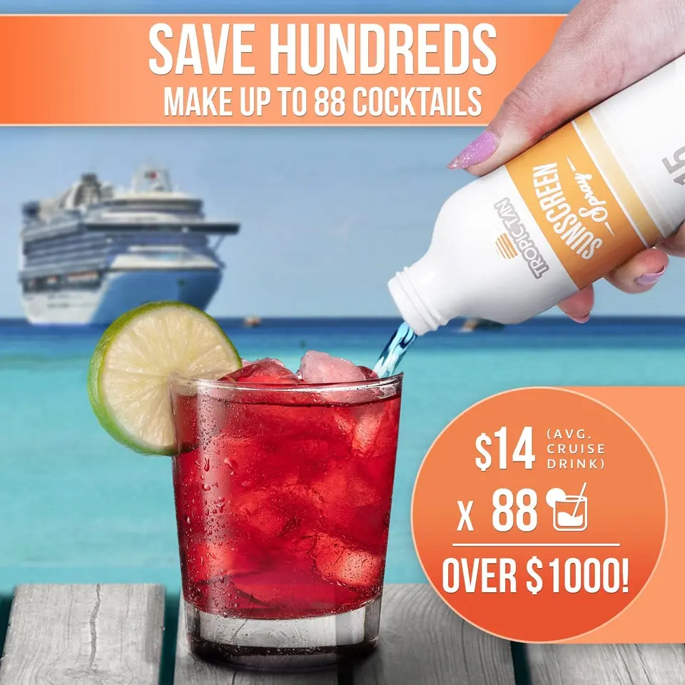 ·CRUISE ESSENTIAL: Use the large shampoo and conditioner flasks to bring all your liquor onboard, then pour into the smaller sunscreen and lotion flasks for discreet consumption anywhere