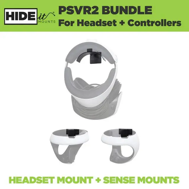 PlayStation VR2 gamers, look no further! Our HIDEit PSVR2 Mounts offer a fresh new way to game: one that's sleek and organized! Ditch the bulky VR display stands and take advantage of unused wall space. The Universal Headset Mount safely stores the PS VR 2 headset and the tab keeps it in place to avoid accidental drops or damage. The PSVR 2 Controller Mounts are rubber dipped to prevent sliding and scratches when placing controllers on and off the mounts. So get ready to upgrade your VR setup with the HIDEit PSVR2 Wall Mount Bundle!
