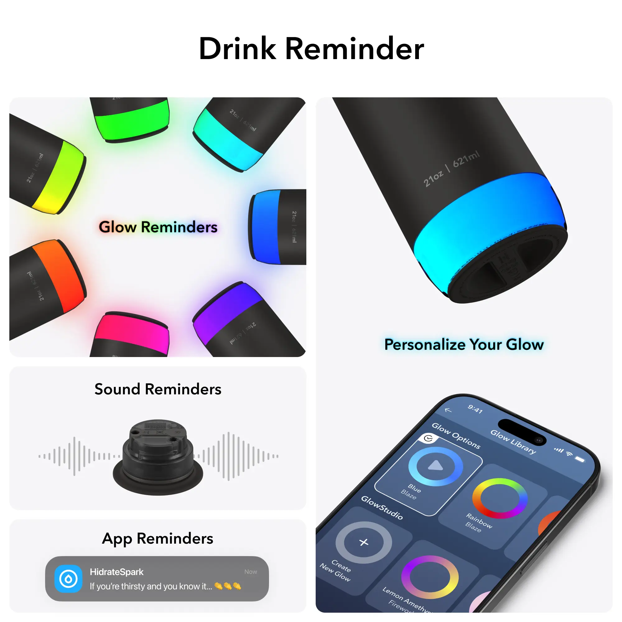 ·Drink Reminder – Customizable 360° glow alerts and optional sound chimes coach you to drink more water throughout the day.