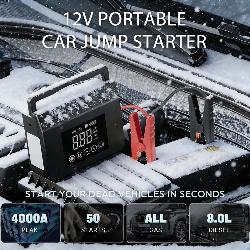 ·【4000A Jump Start Battery Pack】The 15,000mAh jump starter is equipped with a peak current of 4000A, enabling it to start 12V vehicles (8.0L gasoline/7.0L diesel engine, including hybrid power) in just 3 seconds. Even in low temperatures (-20°F to 70°F), it exhibits superior starting performance with just 80% battery capacity. This portable jump starter can initiate the vehicle up to 50 times and boasts a service life of over 1000 charge cycles.