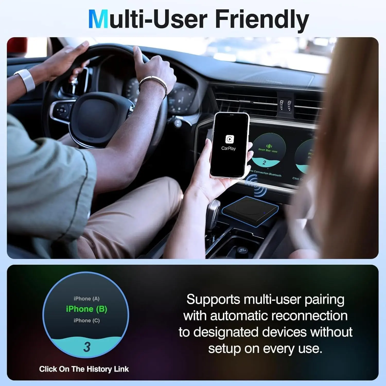 ·【Easy to Use】:Plug and play design, suitable for all motorists.. Just plug and play, no need for any extra drive, apps, or troublesome system upgrades. After the first setup, our adapter will automatically activate the CarPlay wireless connection every time the car starts. Enjoy setup it up once and for all.