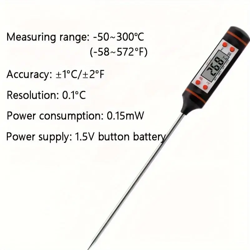 304 stainless steel probe that can be inserted into food or liquids to measure the internal temperature.It is a great helper for kitchen masters.