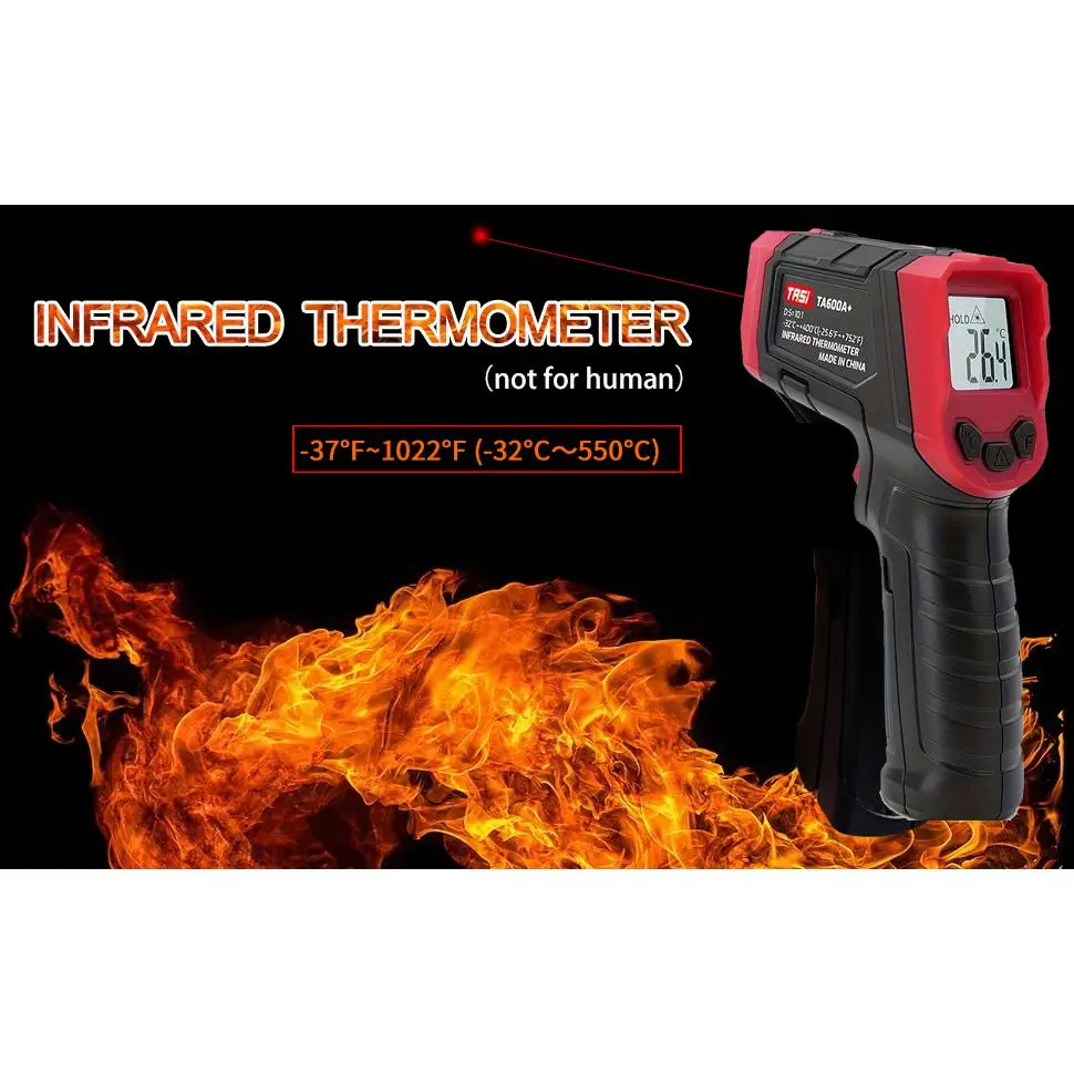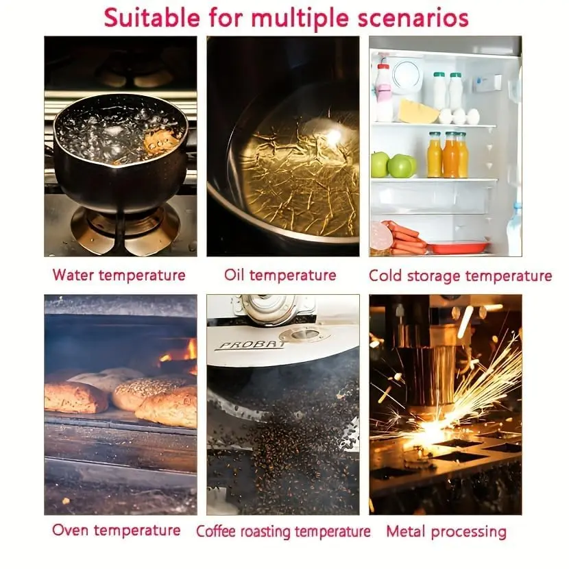 [HIGH ACCURACY]This instrument combines the latest temperature sensor technology with an advanced Fresnel lens, delivering high-accuracy readings of up to ±2% in just 0.5 seconds.The adjustable emissivity is 0.1-1.0, allowing for more accurate measurement of the surface temperature of various objects.[Wide Temperature Range]The infrared thermometer provides precise, non-contact readings from -32°C to 550°C (-37°F to 1022°F) within 0.5 seconds.Release the trigger to freeze the readings and ensure measurement accuracy.Measure the surface temperature of everyday and industrial objects such as food, glass, steel, etc.(Note: Please DO NOT use the thermometer on humans or animals.)[Free Meat Thermometer]Can measure the internal temperature range: -50°C to +300°C / -58°F to +572°F, fast reading, large LCD display, 304 stainless steel probe, high precision (±1°C /°F).It can be used for home refrigeration or cooking, measuring food heating, or for daily use.It automatically turns off after 15 minutes.[SAFE TEMPERATURE MEASUREMENT]This non-contact thermometer is designed for safety and allows temperature measurements from a distance, ideal for hazardous or hard-to-reach areas.Perfect for industrial or household use, as it ensures safety without compromising accuracy.[BEST FAMILY GIFT]The infrared thermometer can be used for cooking, grilling, car repair, home maintenance, and other household tasks.Paired with a meat thermometer, it's the best culinary aid for chefs and foodies, better supporting everyday life.We offer a lifetime warranty and a 60-day refund.