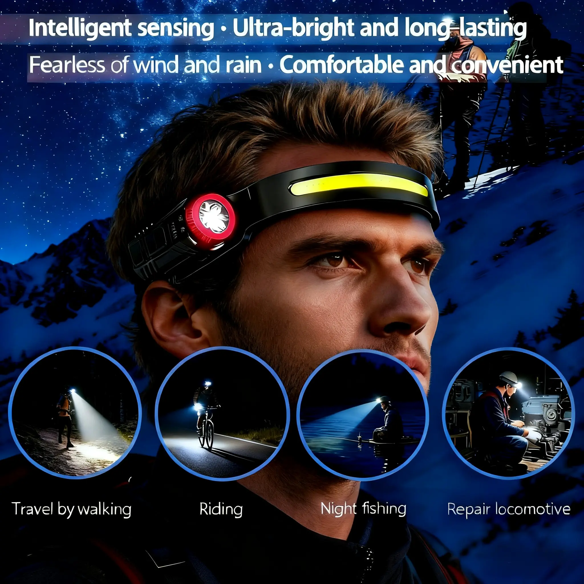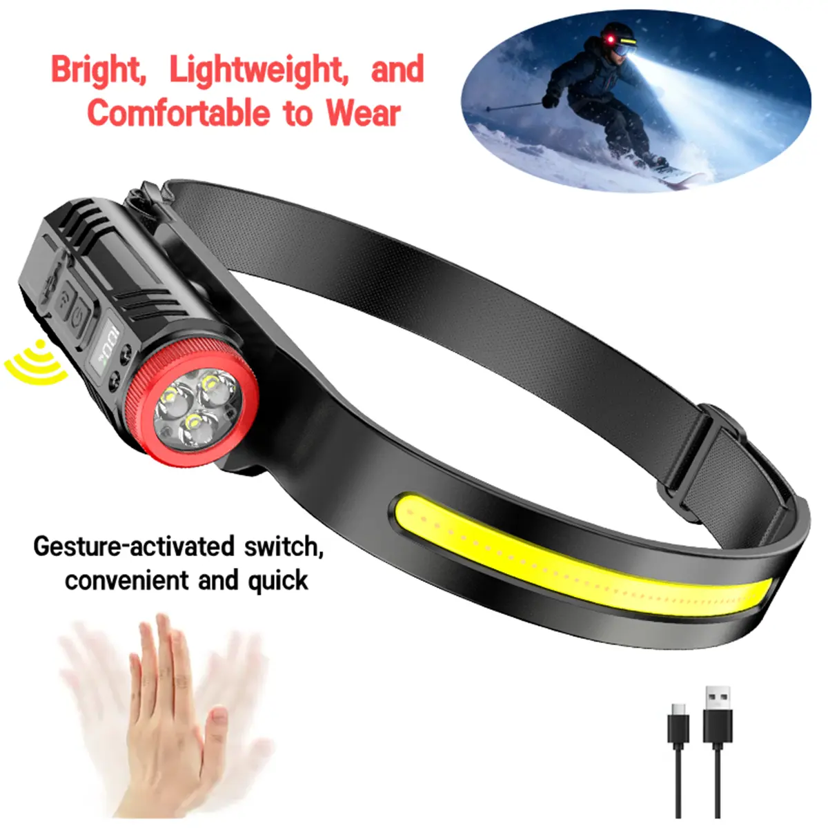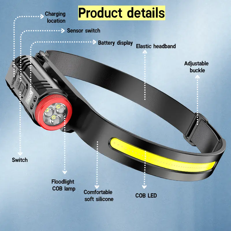 Choose from five powerful lighting modes, including a hand wave sensor for easy, hands-free control—ideal for when your hands are busy or cold. Featuring advanced COB and XPG LED technology, this headlamp provides a bright, stable beam that adapts to all your needs.