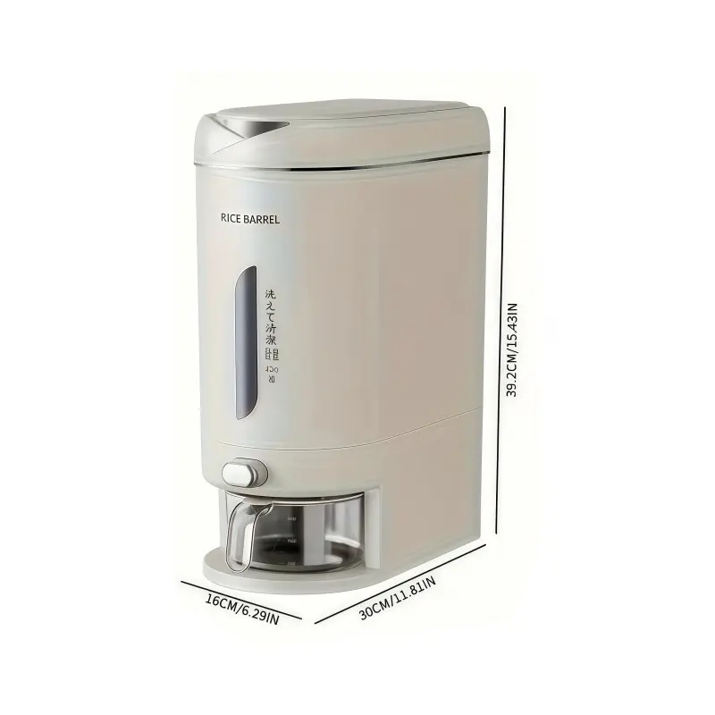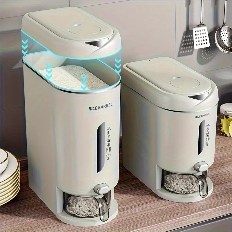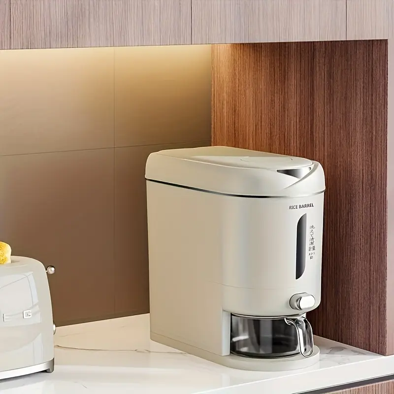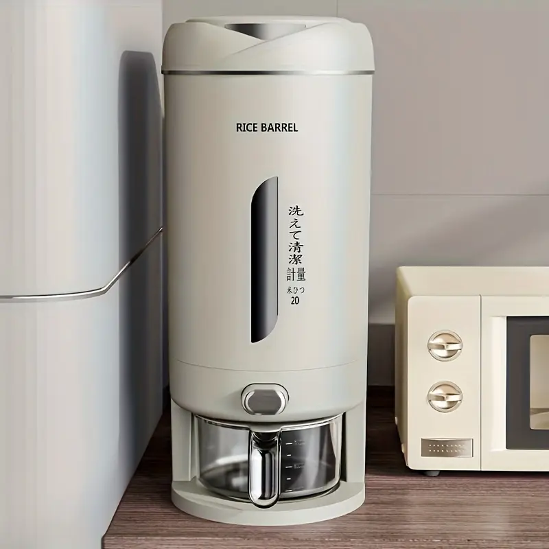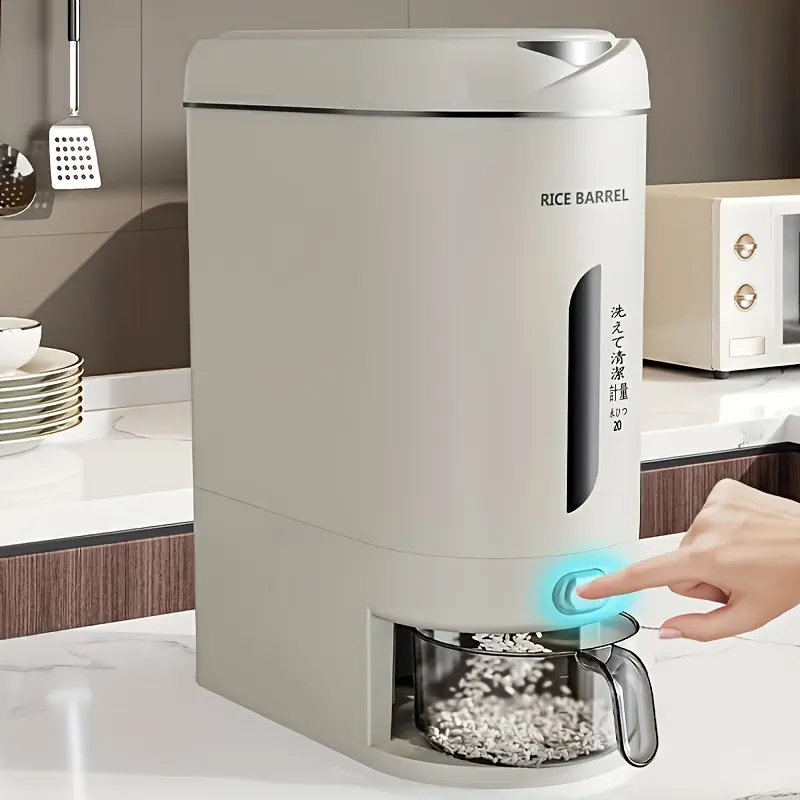 1 Pc Large Capacity Automatic Rice Dispenser, Food Grade Plastic Moisture-Proof Insect-Proof Sealed Tank, One‑Key Quantitative Rice Output, Home Kitchen Countertop Grain Storage