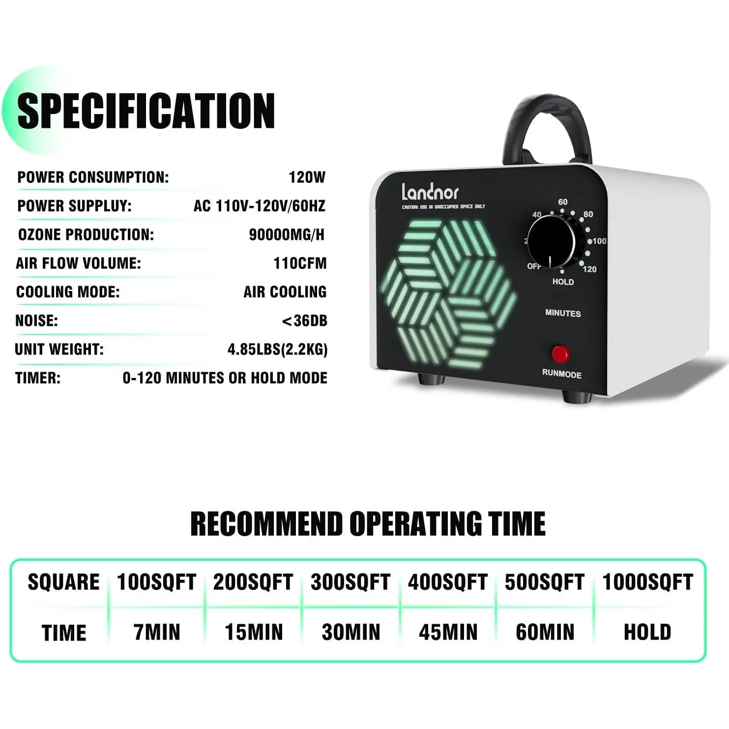 Generator 90,000mg/h for Up to 6,000 Sq Ft, HighCapacity Commercial Ozone Machine with Timer, Portable Purifier Deodorizer for, Basement, Smoke, Pets,, Office