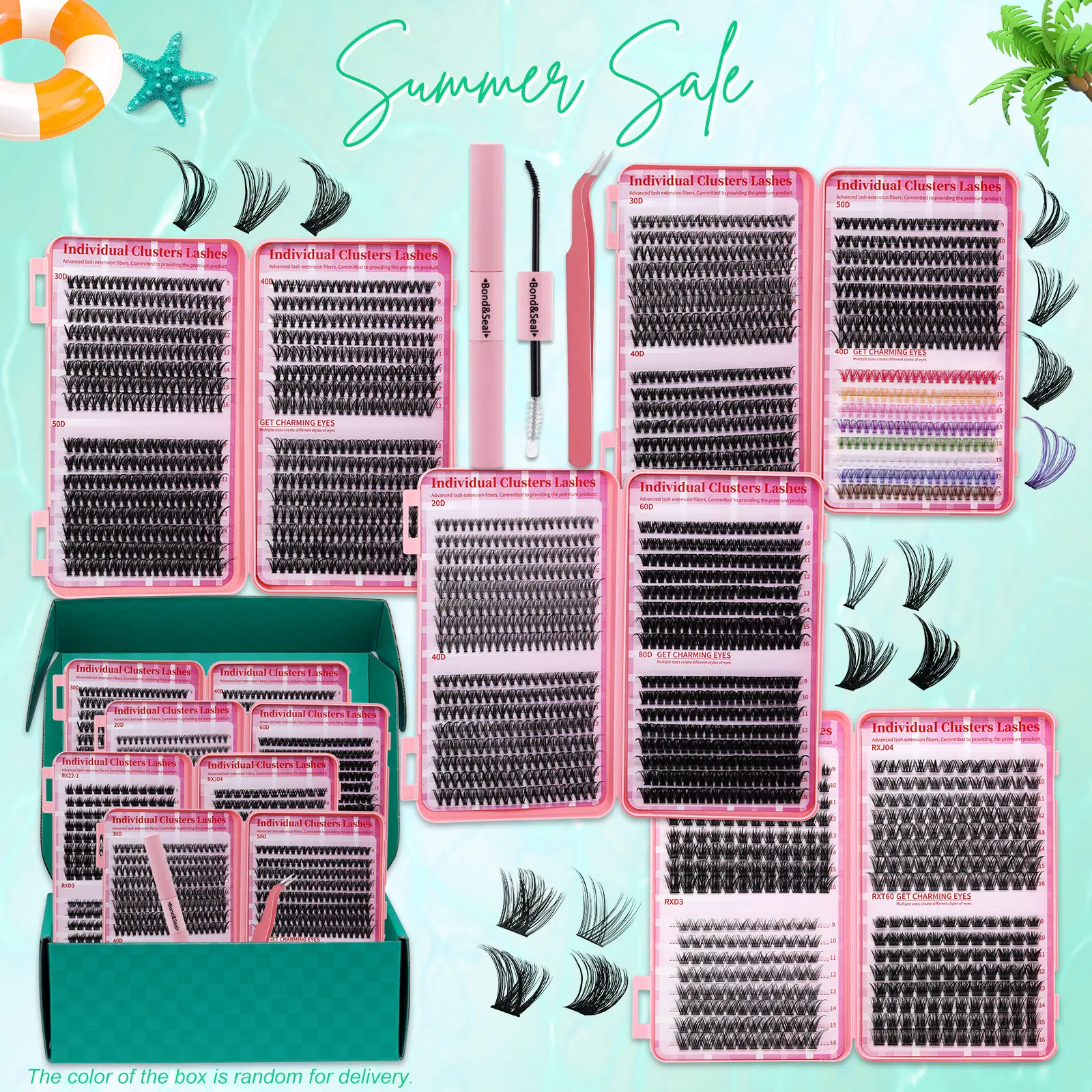 Very cute came with about 7 packs of lashes and I love all of them. The bond and seal was very good and they don’t move or fall off when you sleep, will buy again 100/10.