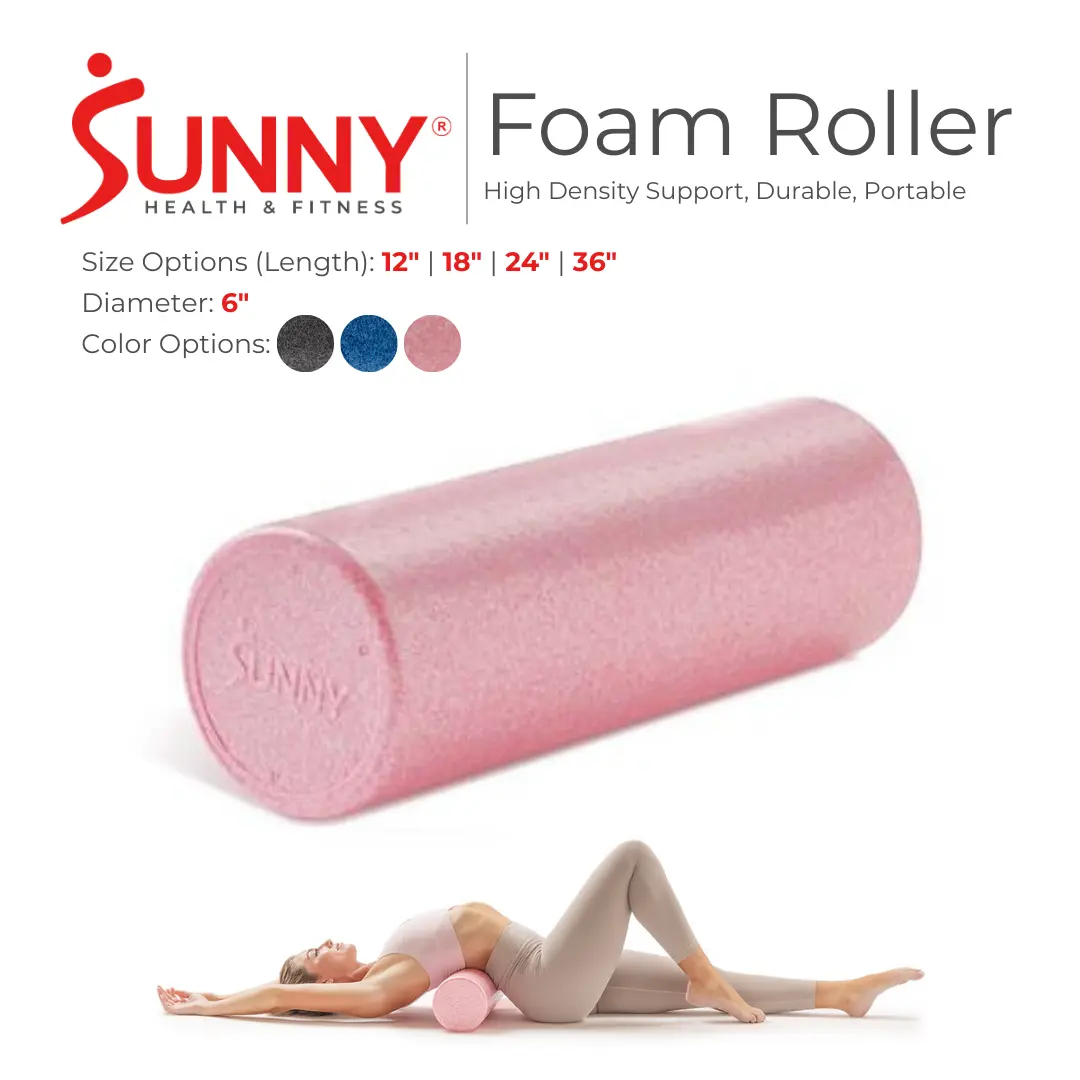 5. Sunny Health & Fitness High Density Foam Roller - Multiple Colors & Sizes for Post Workout Muscle Recovery & Physical Therapy - Perfect Gift for Yoga Fitness Pilates Balance Training Sore Muscle Relief Massage Flexibility Mobility Stretching