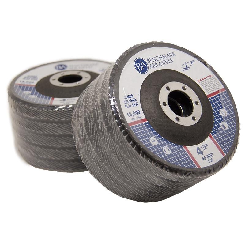 4-1/2" x 7/8" T29 (Angled Face) Zirconia High Density Flap Discs are manufactured using European zirconia cloth. The European material is superior due to its uniform particle size and premium blend of ingredients. These discs exceed our other flap discs by packing 40% more abrasives on each snippet than our regular density discs. In addition, all discs are manufactured on computer-controlled machines and subject to numerous tests which ensure high quality and greater safety.