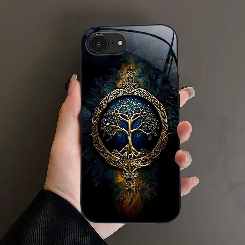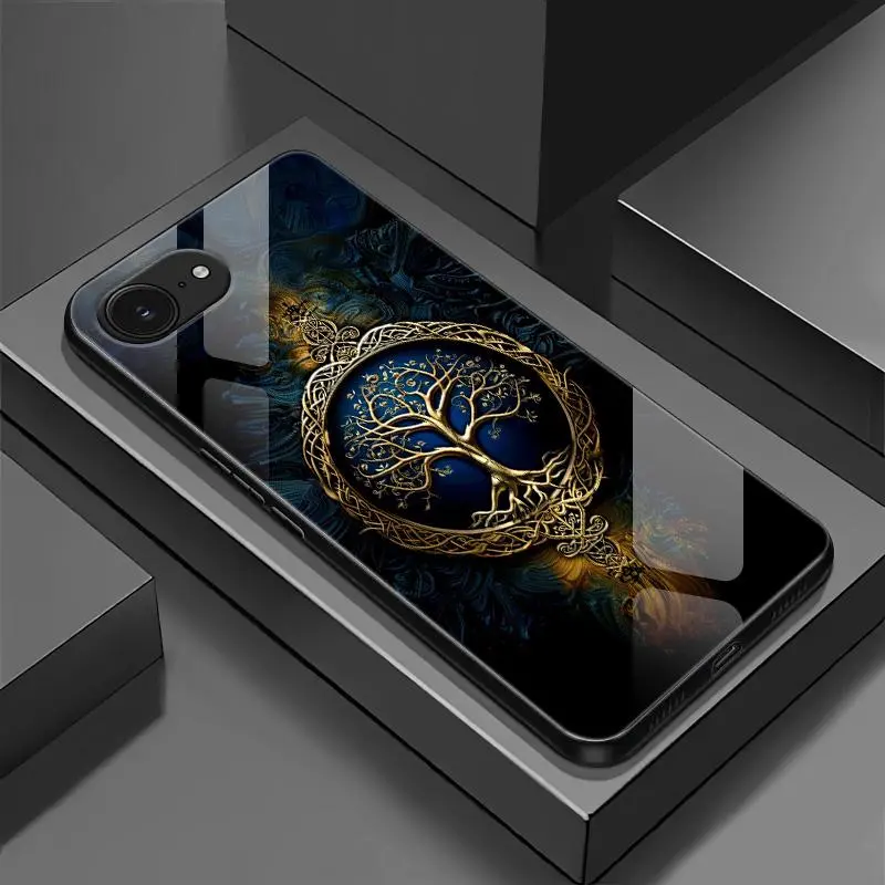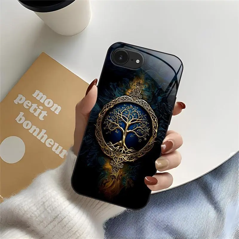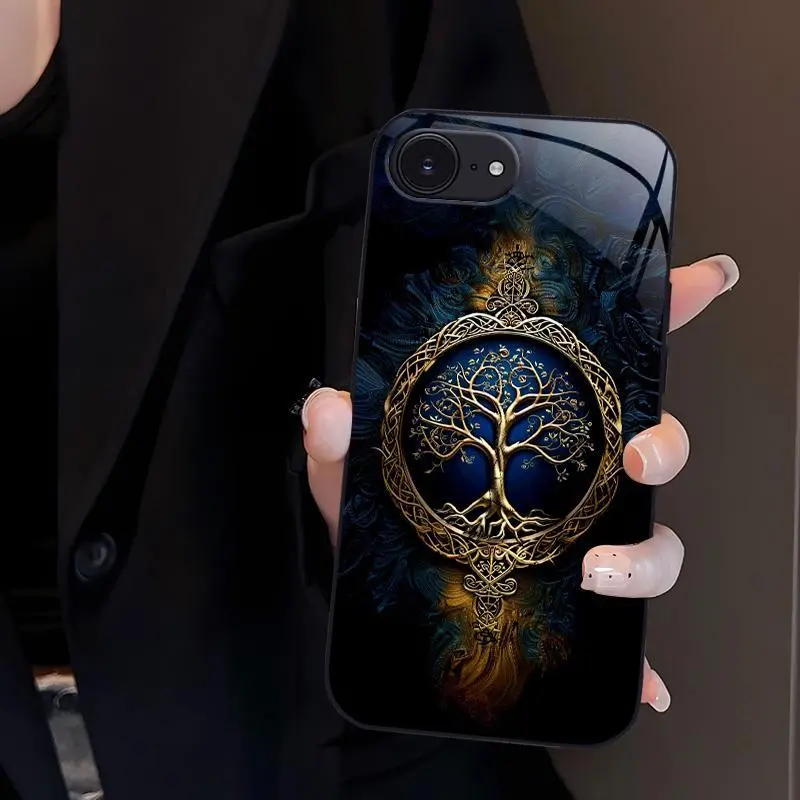 Suitable for [iPhone 16e] high-end phone case🤩, high-end patterns,blue and gold tree of life pattern new black phone,drop-resistant and fingerprint-proof YM99