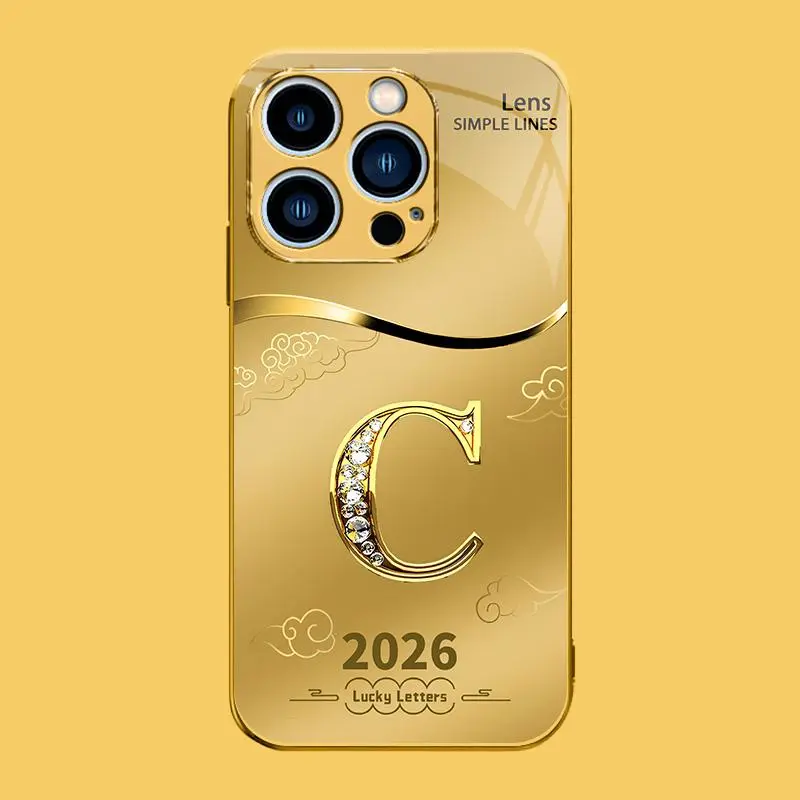 Suitable for [iPhone 14 Pro Max] high-end phone case🤩,choose from 26 letters of the English alphabet, each with an exquisite auspicious cloud pattern to bring you good luck YM99