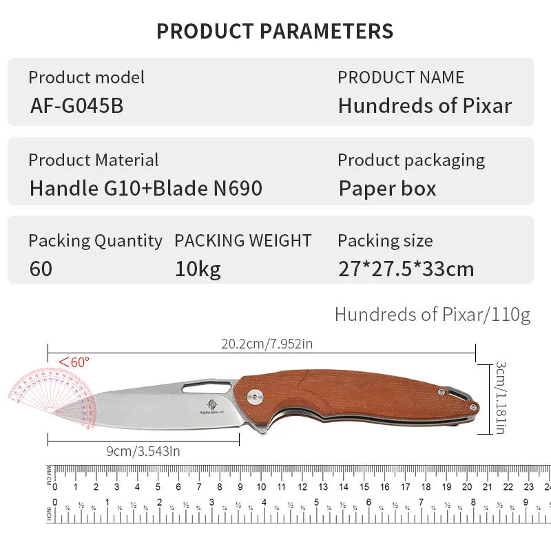 ·Compact & Portable: This folding knife is perfect for outdoor adventures. It features a G10 non-slip handle for a secure grip. The N690 stainless steel ensures durability and resistance to corrosion and wear. Ideal for both home and outdoor use.