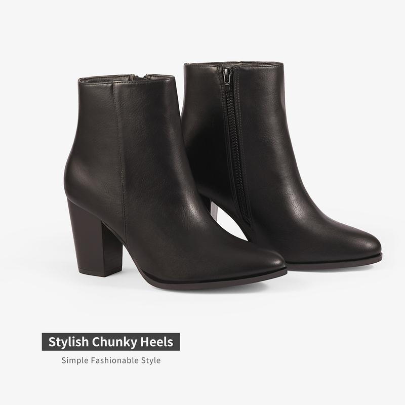 These high-heel ankle boots are stylish, comfy and practical enough to wear to any occasion. These boots have a 3-inch block heel, and the shaft is 4.5-inch in height with a 10.5-inch opening circumference.