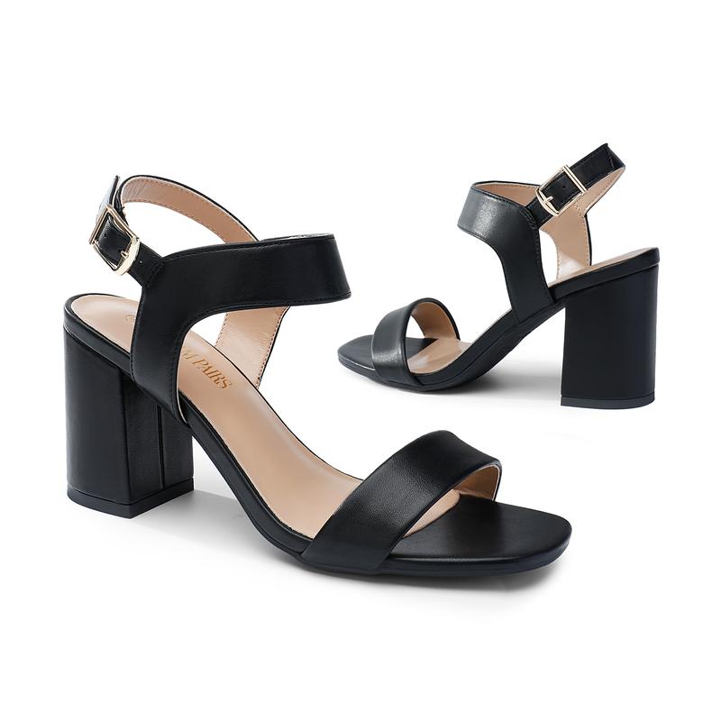 ·Retro Style: These women’s high heel chunky strap sandals feature a square toe and a single strap that is minimalistic and stylish.