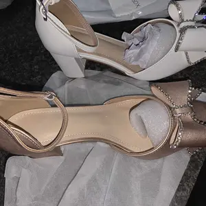 Me encantooooooo los zapatos están hermosos ☺️ buena la calidad y el diseño perfecto para algún evento que tengas están bonitos los tacones no son tan altos queda perfecto la Corbata que tiene es un poco grande pero lo ase ver bien bonito al zapato y la sintilla en el pie está muy bonito ordenalo😍