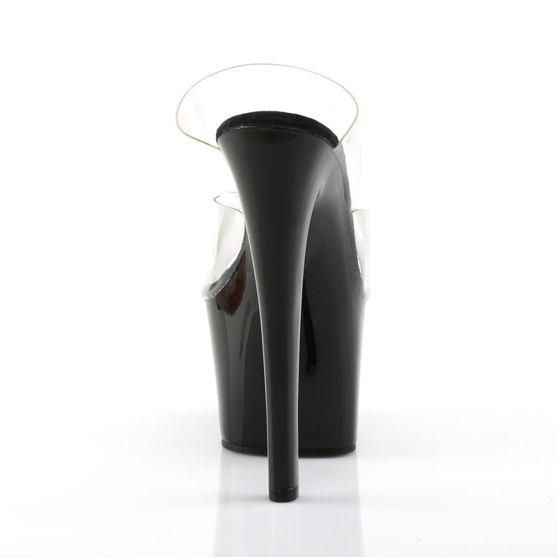 7" (17.8cm) Heel, 2 3/4" (7cm) Black Platform Clear Two Band Slide Featuring Vegan Leather Insole