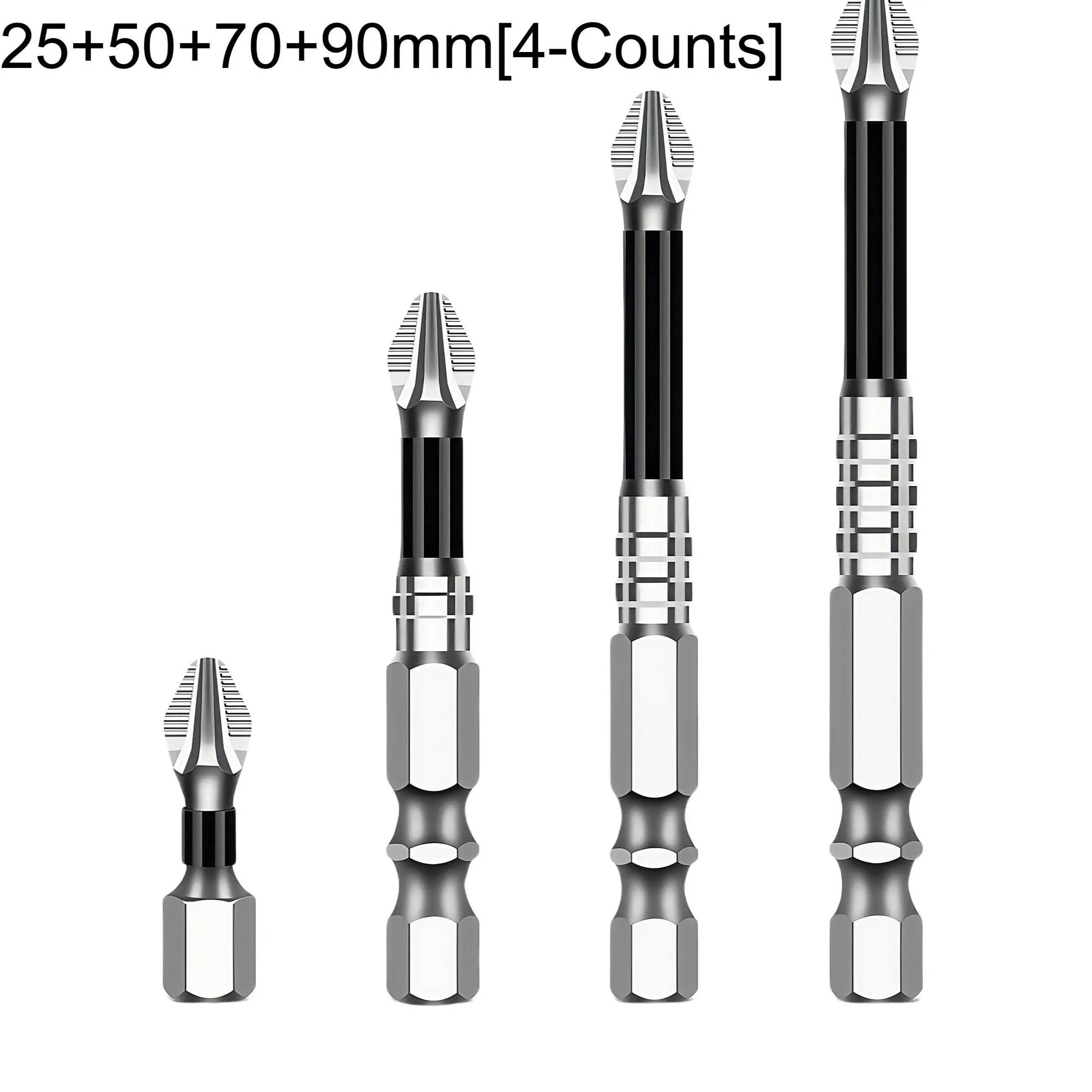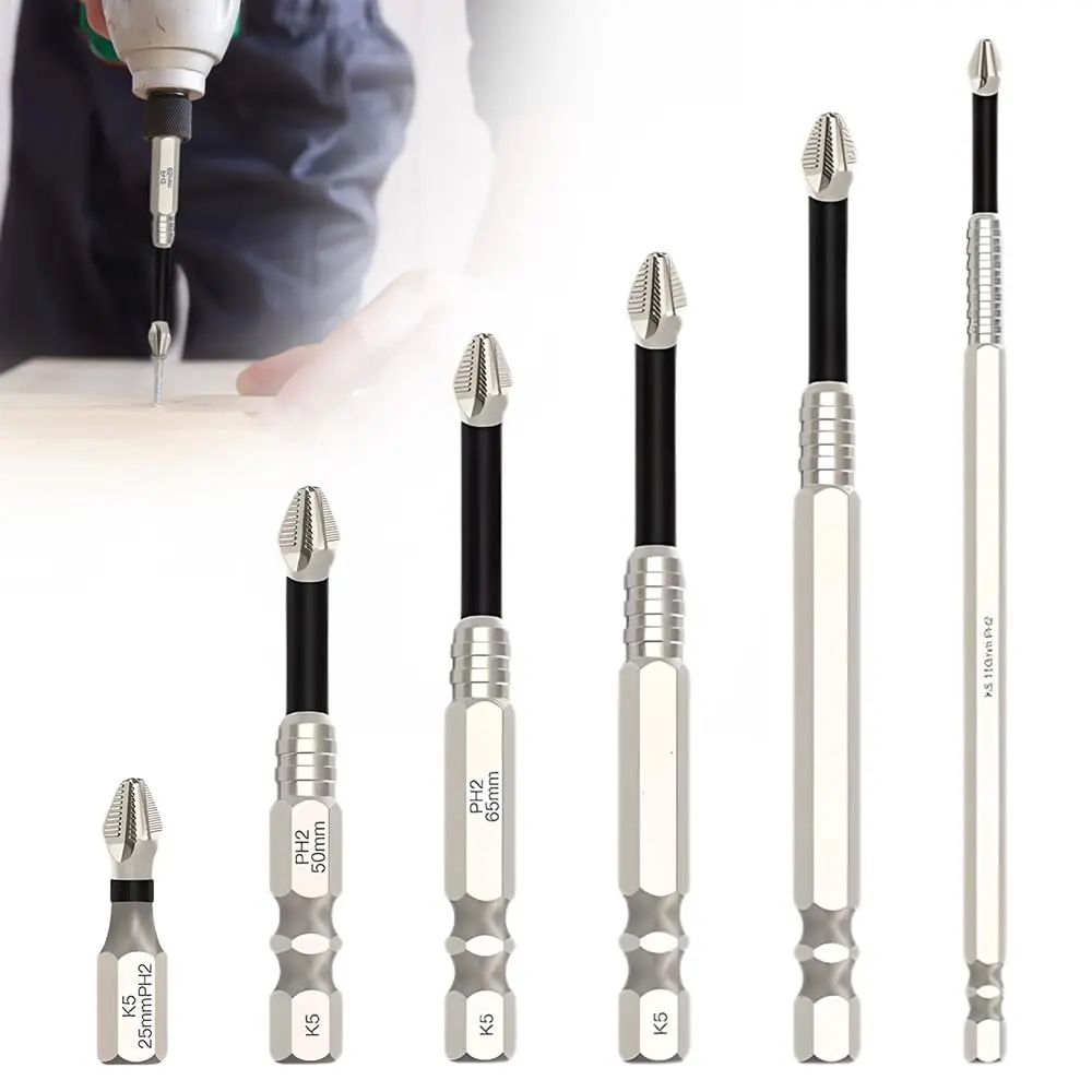 ·Each bit is equipped with a strong magnet at the end, allowing you to easily pick up and fix screws without slipping or stripping. Available in 50mm, 65mm, 75mm, 100mm, 120mm, and 150mm sizes, these bits are designed to withstand repeated use without magnetic decay
