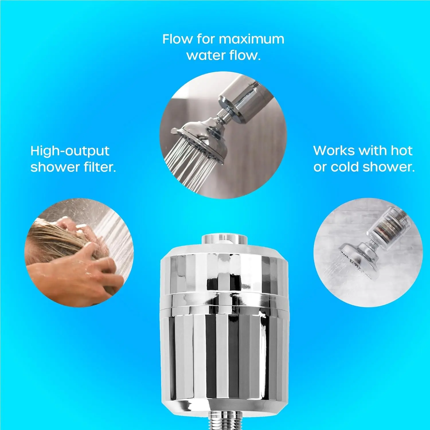 This filter works great. It filters out the hard water and as a result, leaves my skin and hair soft. I highly recommend