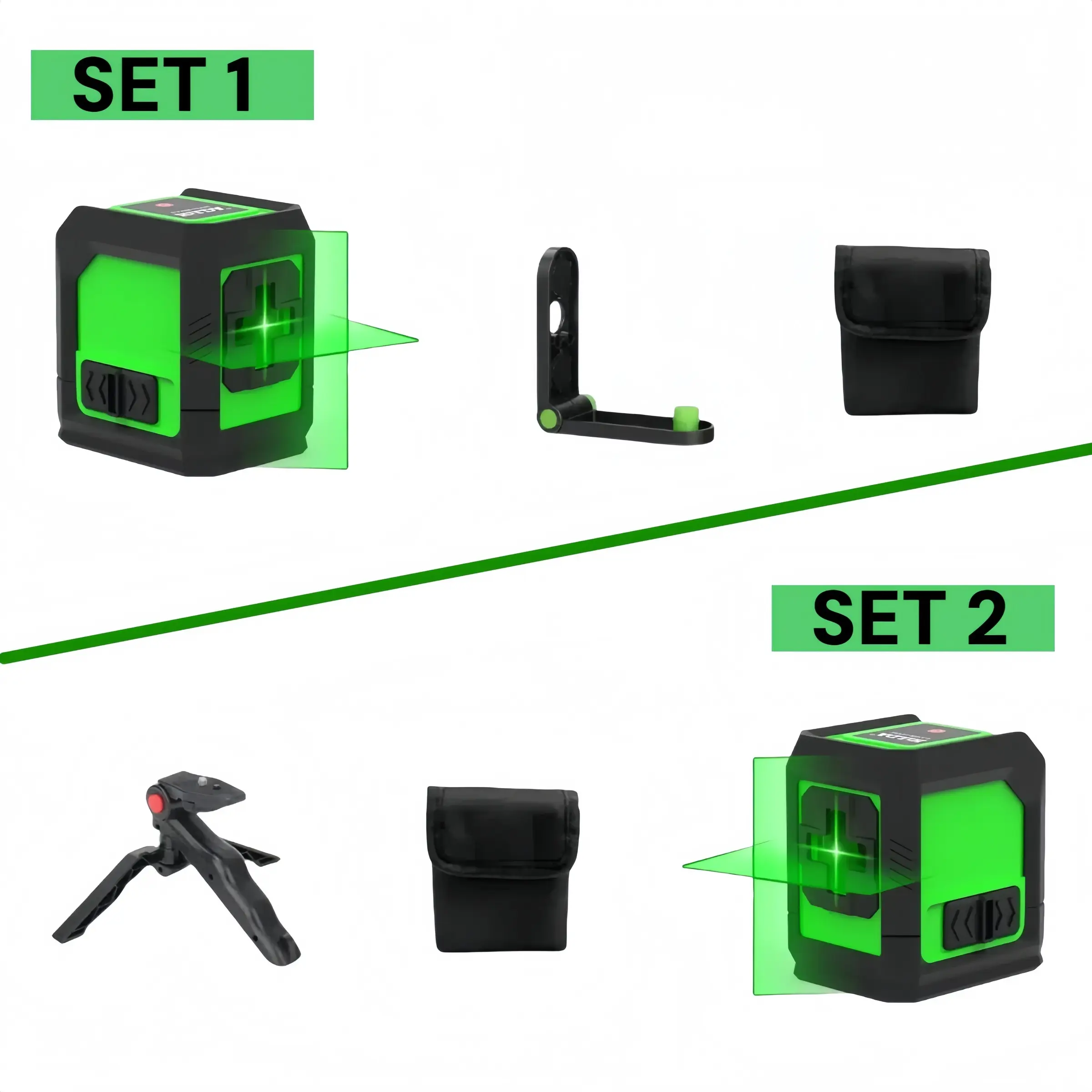2-line compact portable laser level, Self Levelling Laser, automatic leveling, green Dual laser beam line intersecting horizontally and vertically, with rechargeable lithium battery, suitable for home decoration & DIY, pipe installation, outdoor gardening
