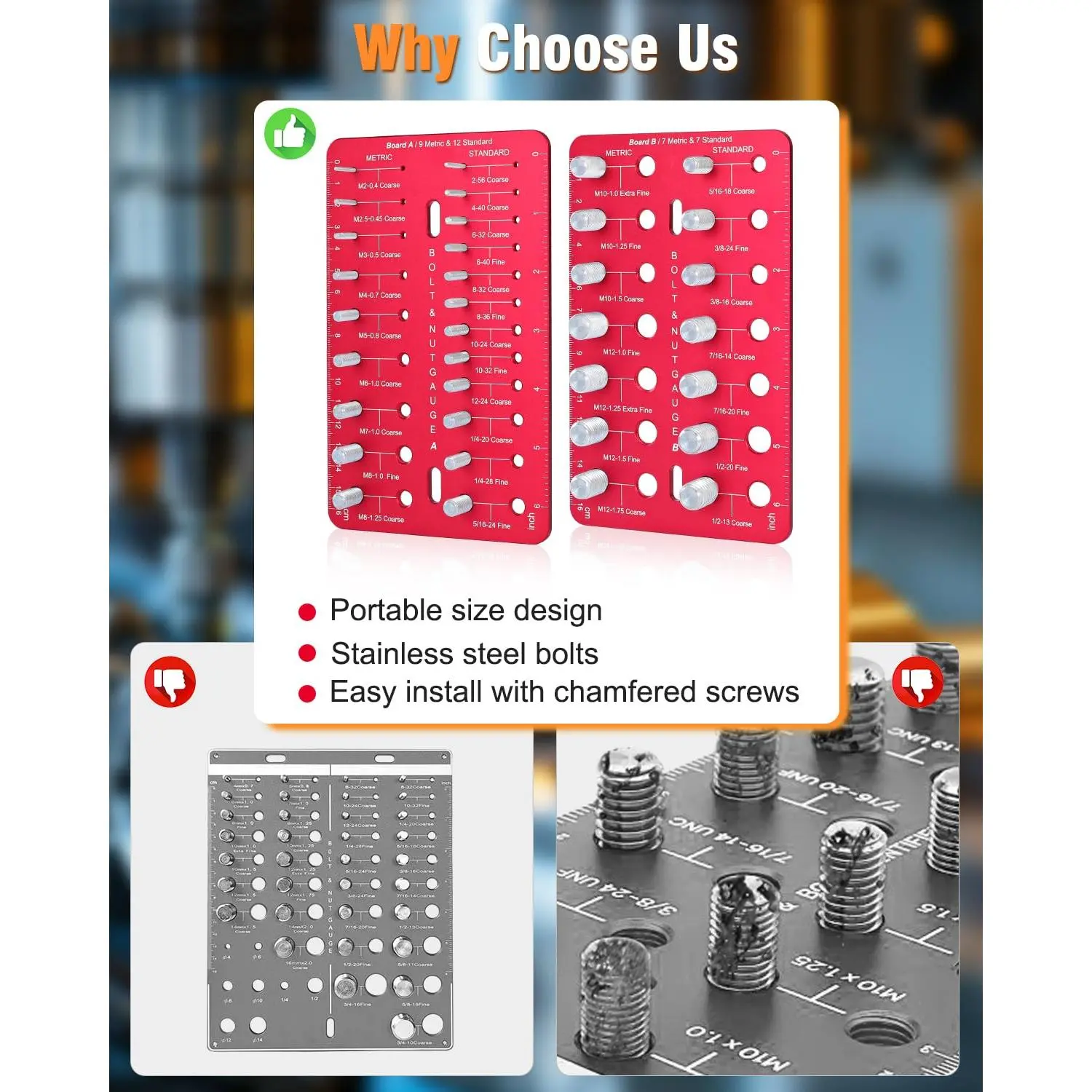 High Quality Thread Checker, Nut and Bolt Thread Checker with 19 Standard and 16 Metric Sizes, Bolt Size Finder and Thread Gauge with Inch and Centimeter Ruler