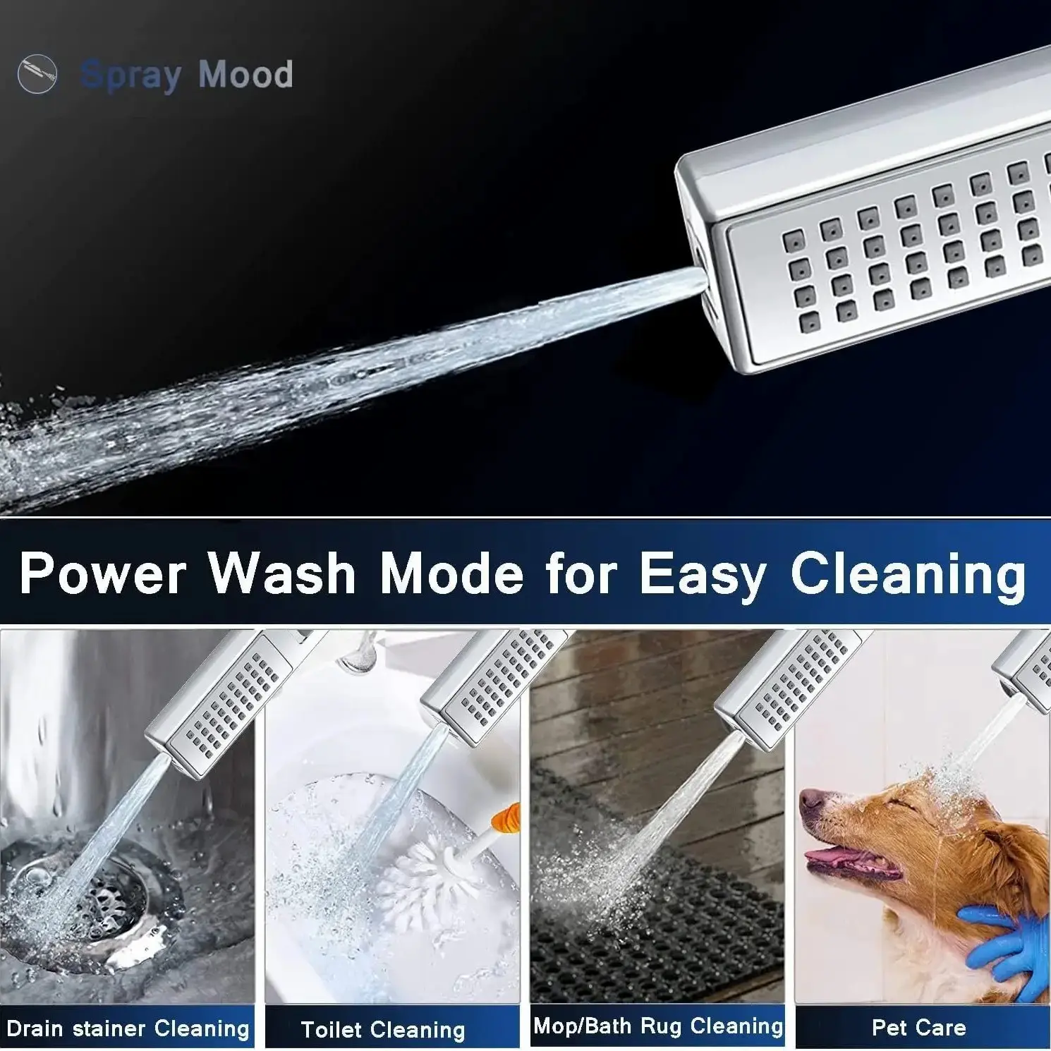 ·【SHOWER HEAD WITH HANDHELD】The 2-in-1 handheld shower can not only be used in the shower, but also can be switched to the spray gun mode with one button when the button is pushed by hand, which can clean .You can use it to bathe pets, to clean the bathroom and so on.