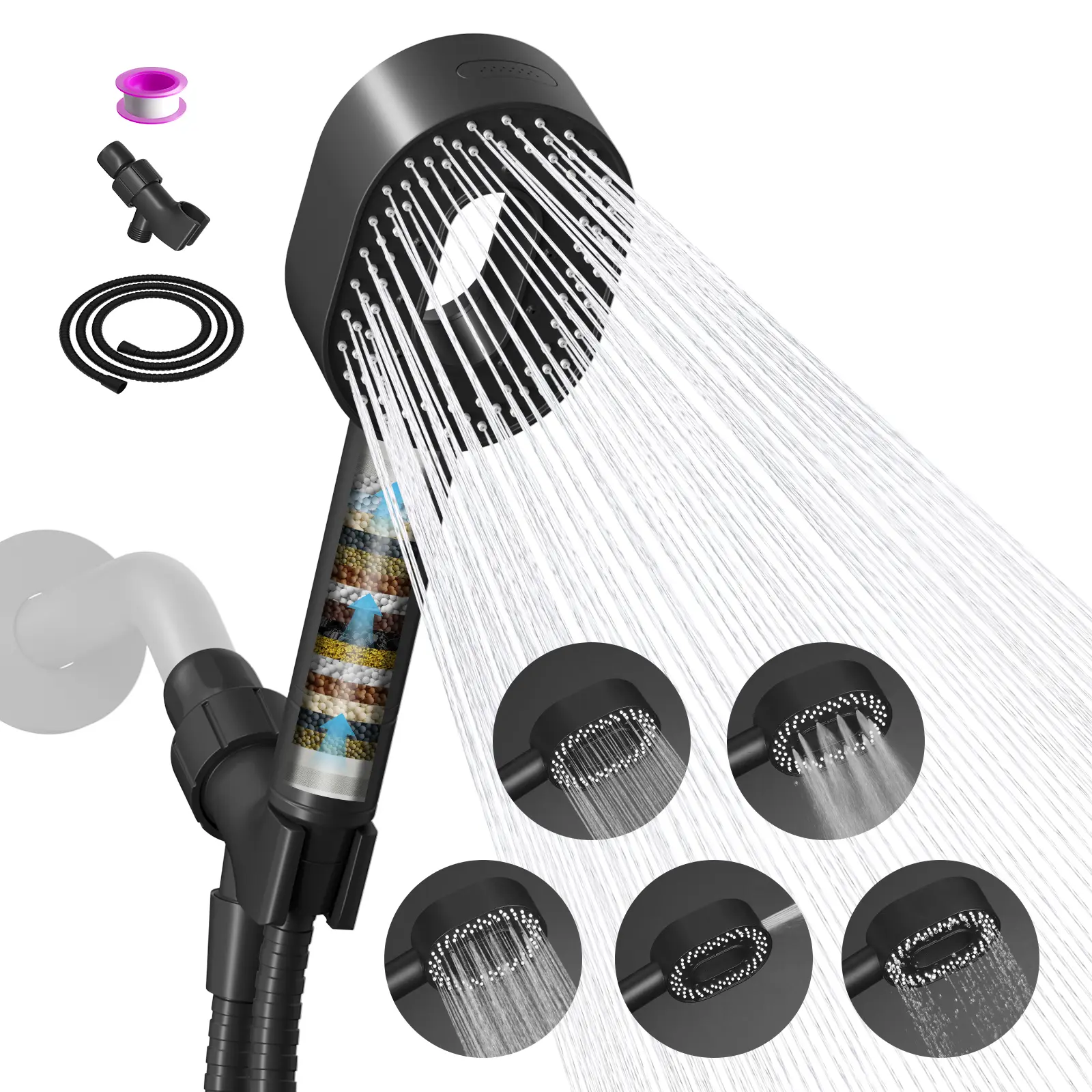 Matte Black shower set + 3 PACK 20 Stage Filter